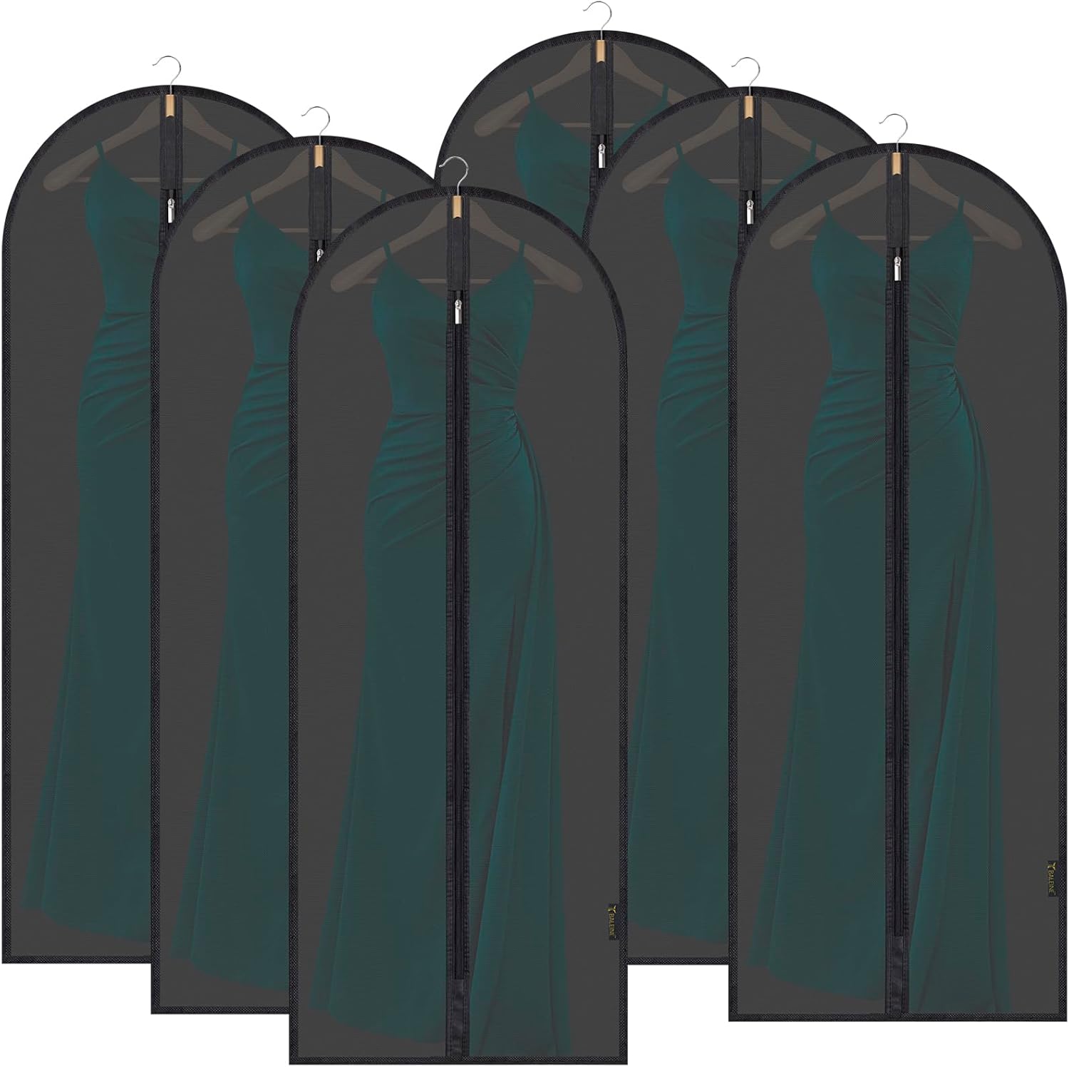BALEINE 60'' Translucent Garment Bags, 6 Packs PEVA Dress Bag for Closet Clothes Dresses Suit Coats Storage (Black, 6PK)