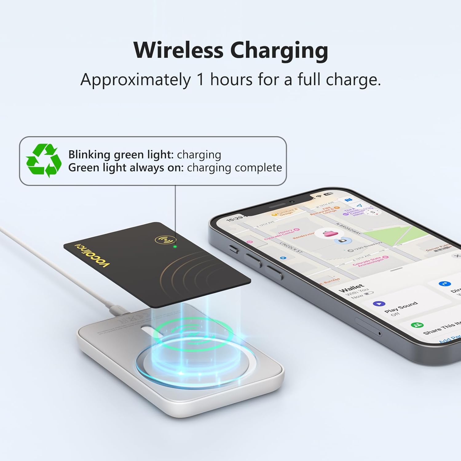 - 【IP67 Waterproof & Wireless Charging】: the VOCOlinc Find My Wallet Card is IP67 waterproof, ensuring it can withstand daily challenges. Built-in wireless rechargeable battery can last up to 6 months on a full charge and can be recycled to save you more unnecessary expenses.