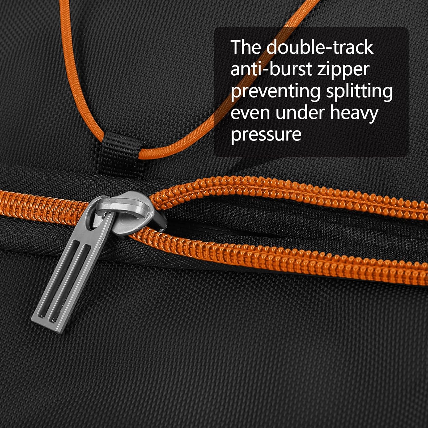 - Comes with two rigid partitions with 3 mesh pockets & 3 stretch pockets creates 3 separate large compartments