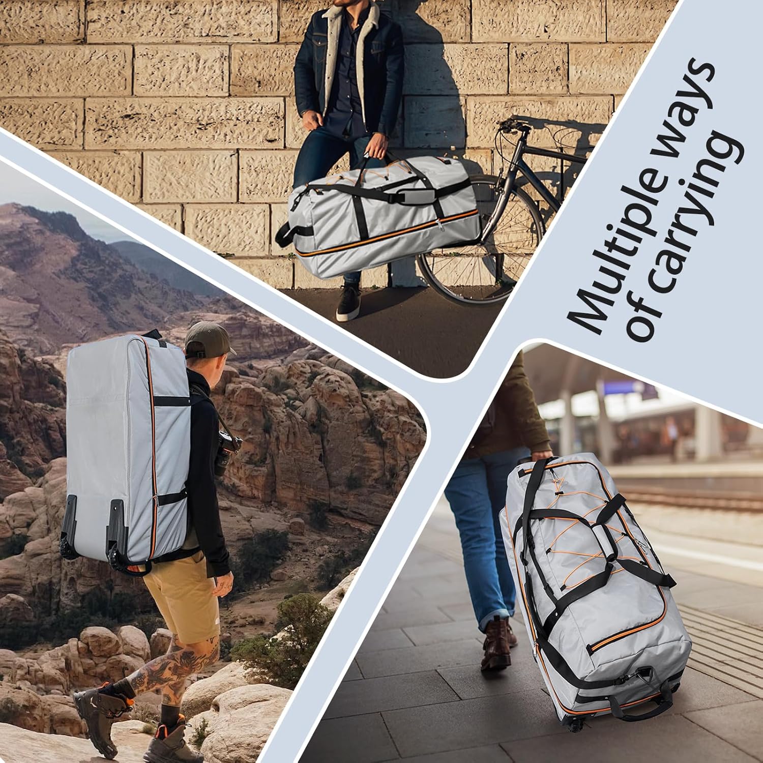 110L Expandable to 140L 32” Foldable Oxford Soft-Sided Rolling Duffle Bag with 2 Heavy-Duty Wheels,3 Large Compartments,Adjustable Shoulder Strap and Attached Organizer Pouch,Grey
