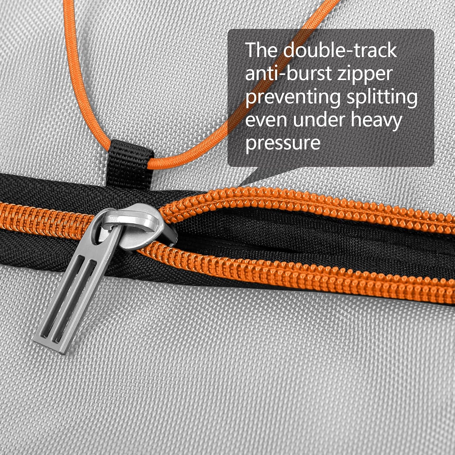 - Comes with two rigid partitions with 3 mesh pockets & 3 stretch pockets creates 3 separate large compartments