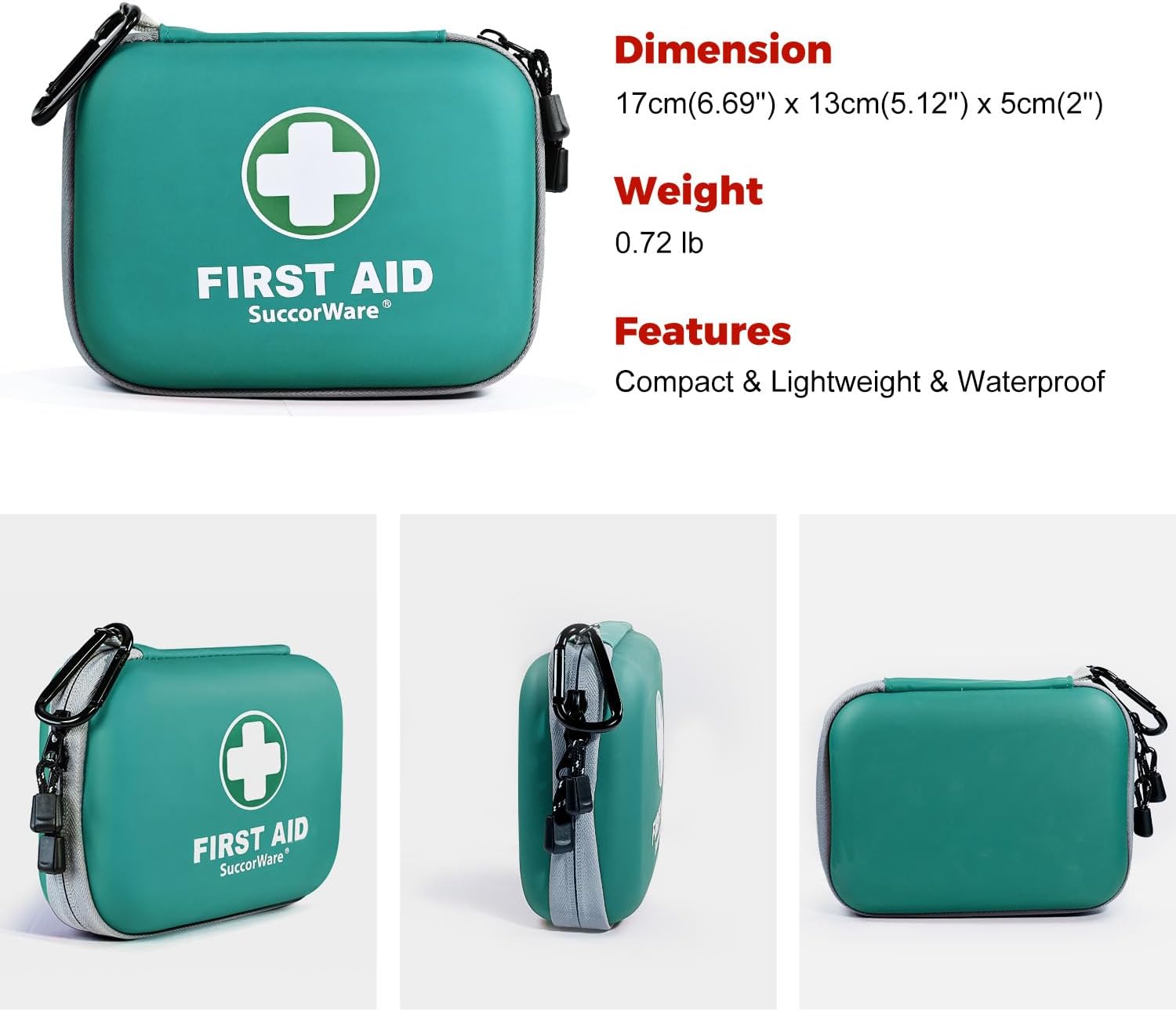 - SMALL AND LIGHTWEIGHT - Small first aid kit measures 17cm x 13cm x 5cm (6.69β x 5.12β x 2") and weighs only 0.72 lbs (326.8g). The right size is perfect for carrying around such as hanging on a backpack, putting it on a car or boat in case of emergency.
