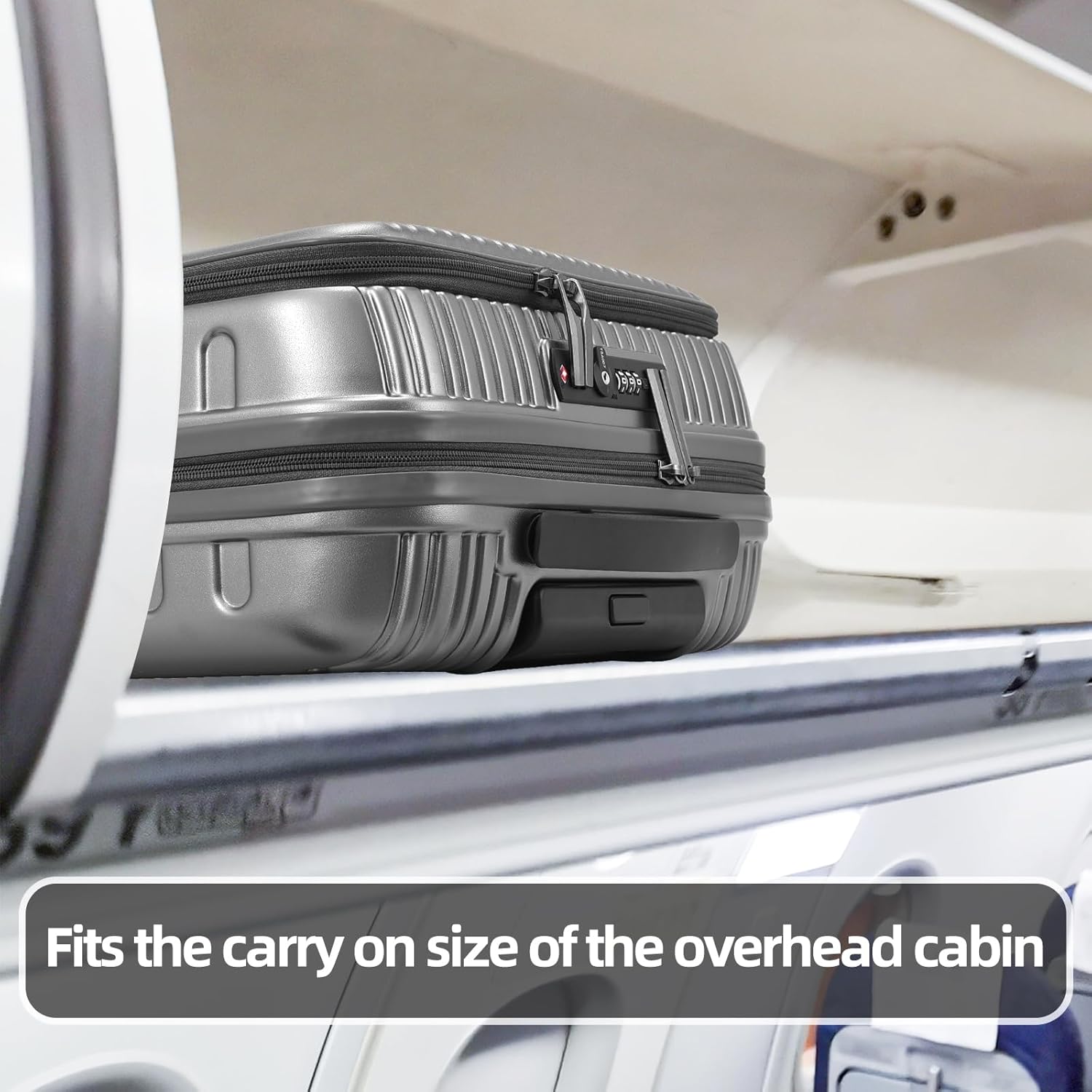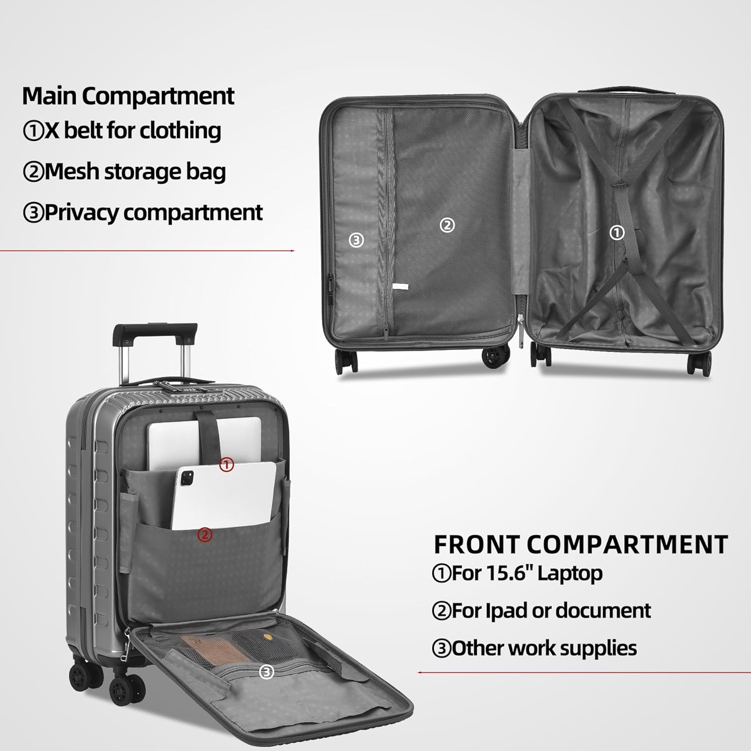 - 20 Inch=Carry On Size & Front Pocket: Kaleenie 20 Inch Large cabin suitcase in size 40*20*55cm(21.65*15.74*8.05"), 3.2Kg(6.4Ib), 45L capacity. A cabin luggage with a laptop compartment is an essential purchase for anyone who travels frequently with their laptop. By keeping your laptop separate from the rest of your belongings, you can keep it protected and reduce the risk of damage during transit.