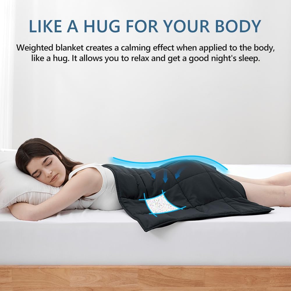 - Meet Your Various Needs: Our weighted blanket is perfect for adults, seniors, and pets. It can be used as a knee blanket for people with leg discomfort. When you are easily distracted at work, you can put heavy blanket over your shoulders, it can help you improve concentration. Body weighted blanket 7 lbs is perfect for people with "sensory needs" or "first-time users". Our weighted blanket is also a good choice if your pets are afraid of "rainy days"