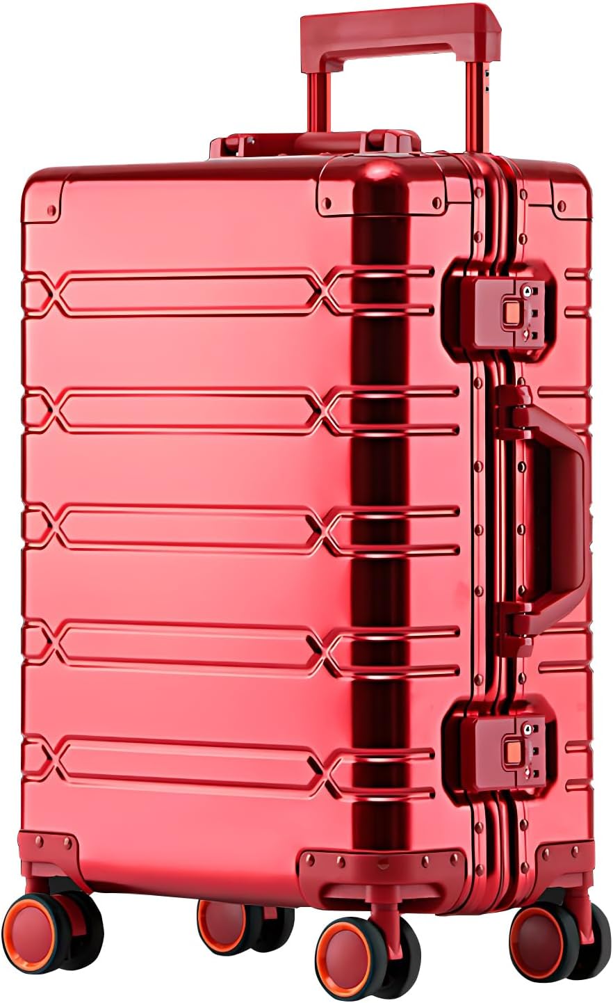 - Full Aluminium-Magnesium Alloy Hard Shell: The 22 in red carry on suitcases with wheels is made of whole full aluminium alloy plate, which can withstand up to 200 lbs, ideal for a bumping journey