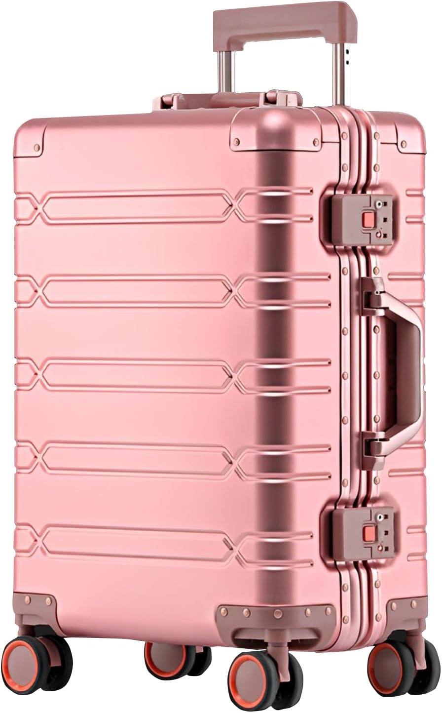 - Full Aluminium-Magnesium Alloy Hard Shell: The 22 inch rose gold 22x16x10 carry on luggage is made of whole full aluminium alloy plate, which can withstand up to 200 lbs, ideal for a bumping journey