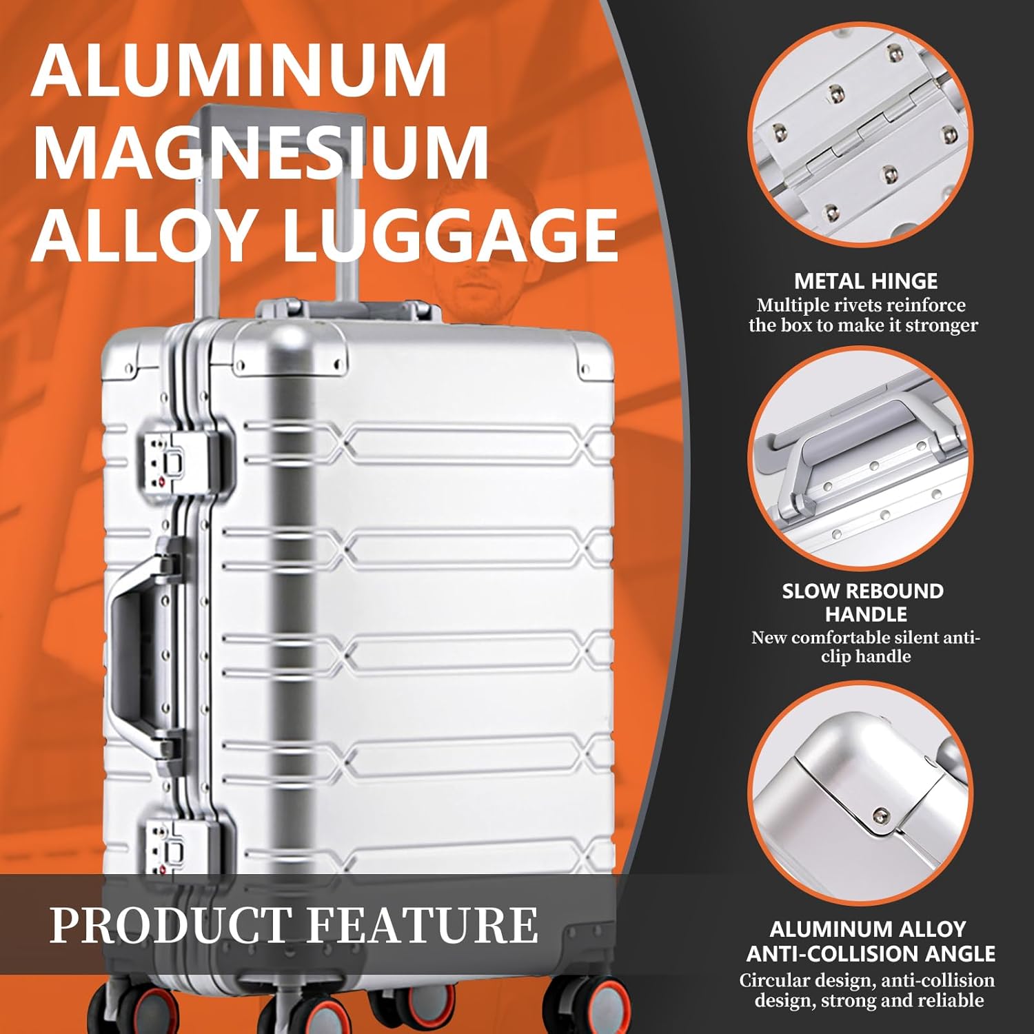 - Full Aluminium-Magnesium Alloy Hard Shell: The 26 inch travel luggage with spinner wheels is made of whole full aluminium alloy plate, which can withstand up to 200 lbs, ideal for a bumping journey
