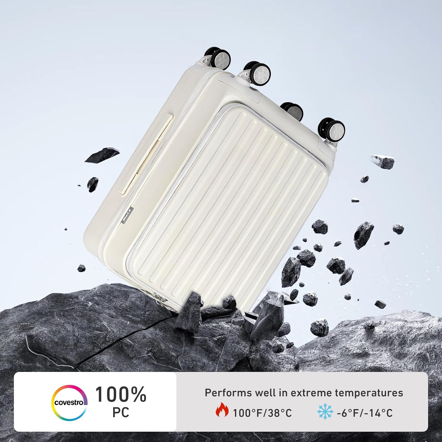 KYME Hardside Carry On Luggage with Laptop Compartment (White, Carry-On 20 Inch)