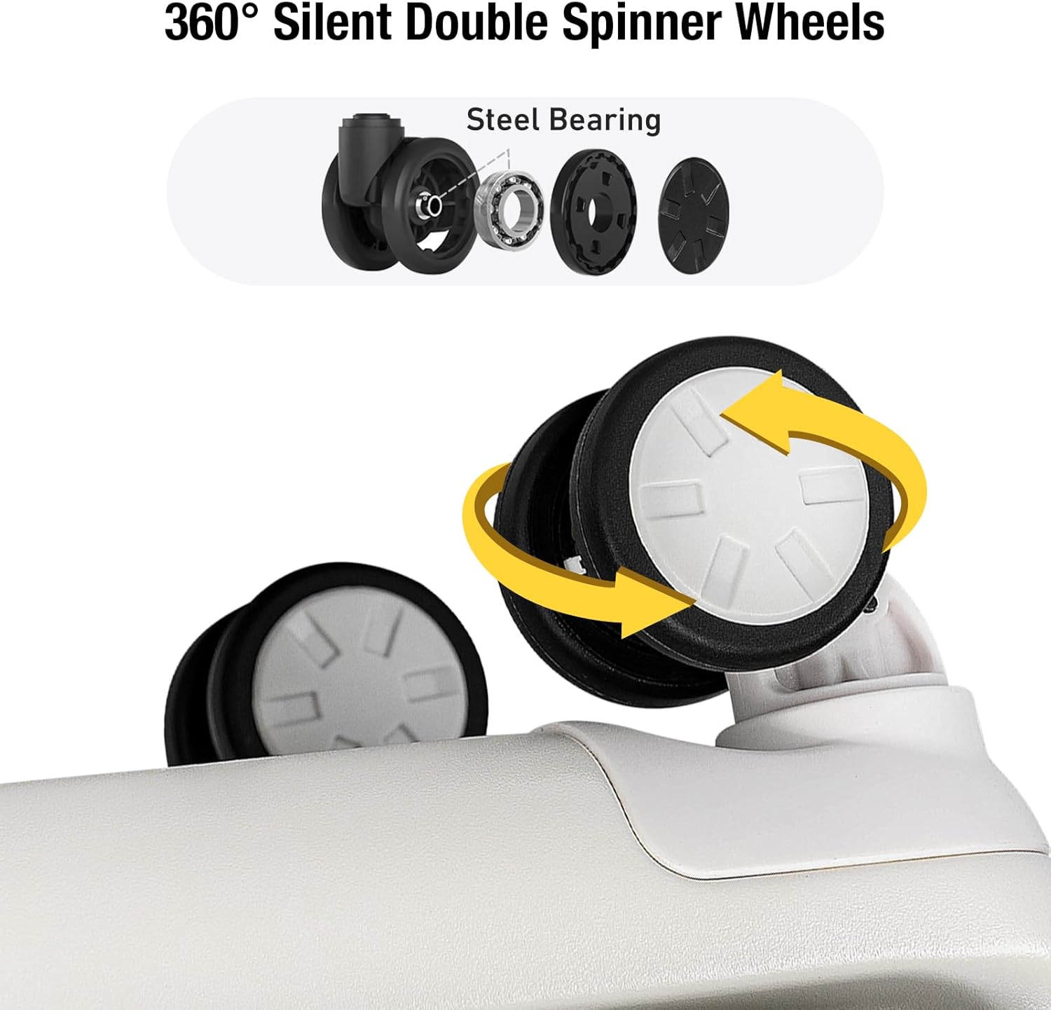 - 360° Quiet Spinner Wheels: Equipped with durable 360° spinner wheels, this suitcase glides smoothly and quietly across various surfaces, including cobblestone roads and carpets. The wheels are built to withstand heavy use while providing excellent maneuverability.