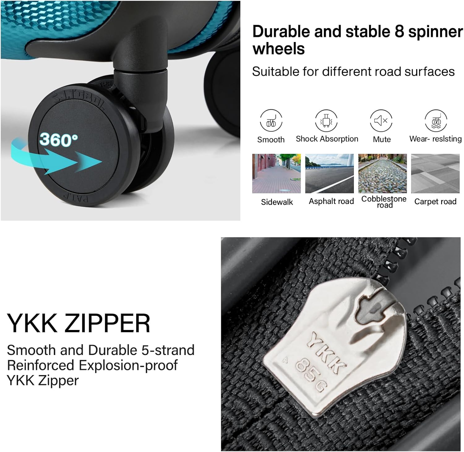 - 【Better Material】This is a suitcases with wheels hardshell,it get benifits from PC material and micro diamond texture on the surface, which is sturdy and scratch resistant,keeping travel suitcase beautiful trip after trip.The lining of this international carry on luggage is also very comfortable, and close fitting clothes can be stored with confidence.