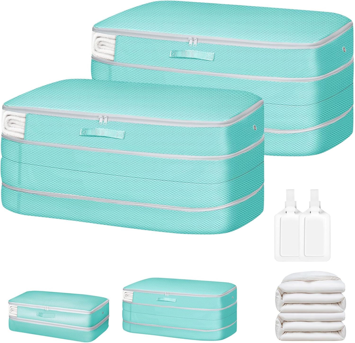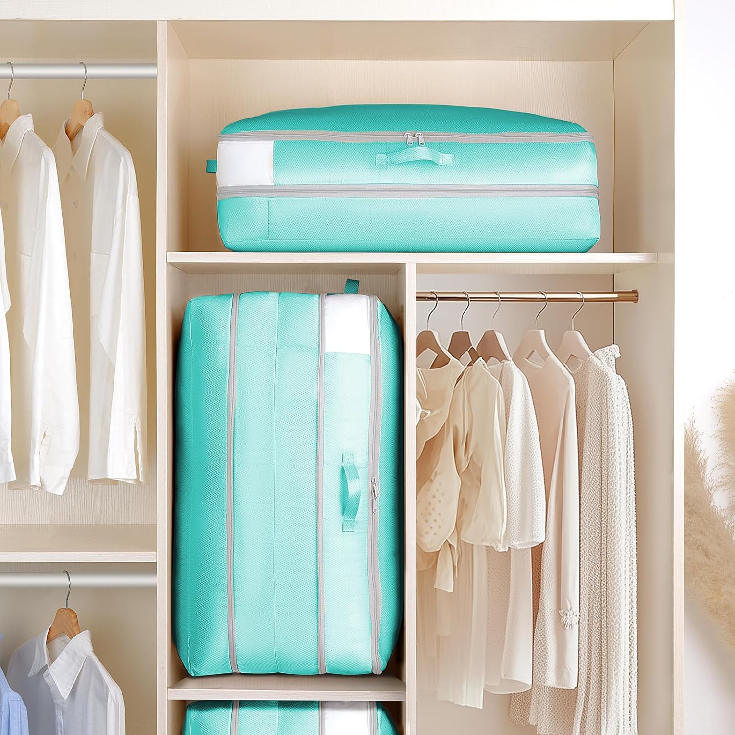 - [Innovative Compression Storage Bags] Simply fill the comforter storage bag, zip it up, press it to release air through the metal vent and mesh window, and then zip up the middle compression zipper to reduce its size and save space. This ultra space saving self compression organizer is perfect for comforter storage, blanket storage, pillow storage, and other large items, allowing you to make the most of every inch of space in your closet or under-bed storage