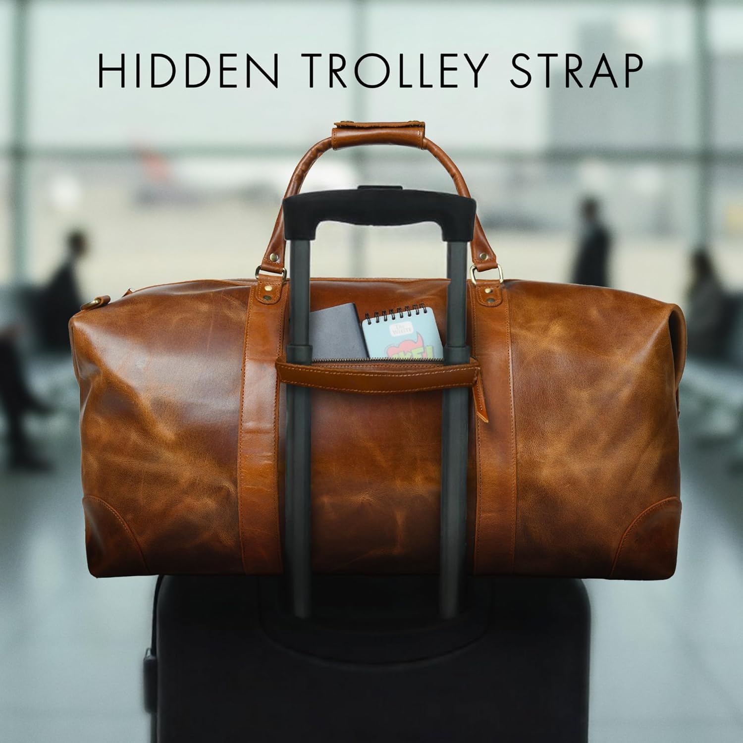 - Premium Full-Grain Leather – Handcrafted from 100% full-grain leather, this durable duffle bag develops a rich patina over time, ensuring long-lasting beauty and functionality.