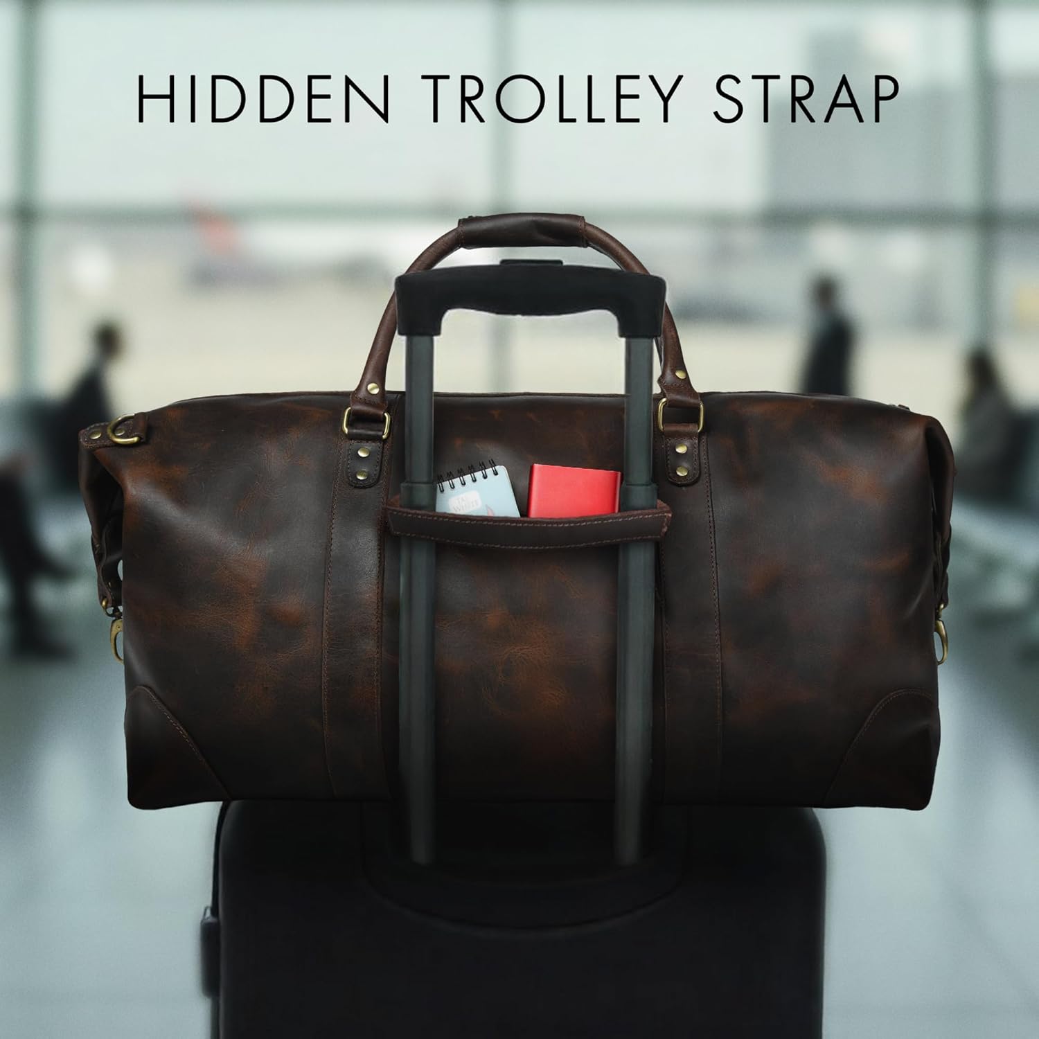 ELIZO Large Leather Duffle Bag For Men Women Big REAL FULL GRAIN Travel Overnight Weekender Carry On Luggage Sports Gym Bags (Walnut 24 Inch) Heritage