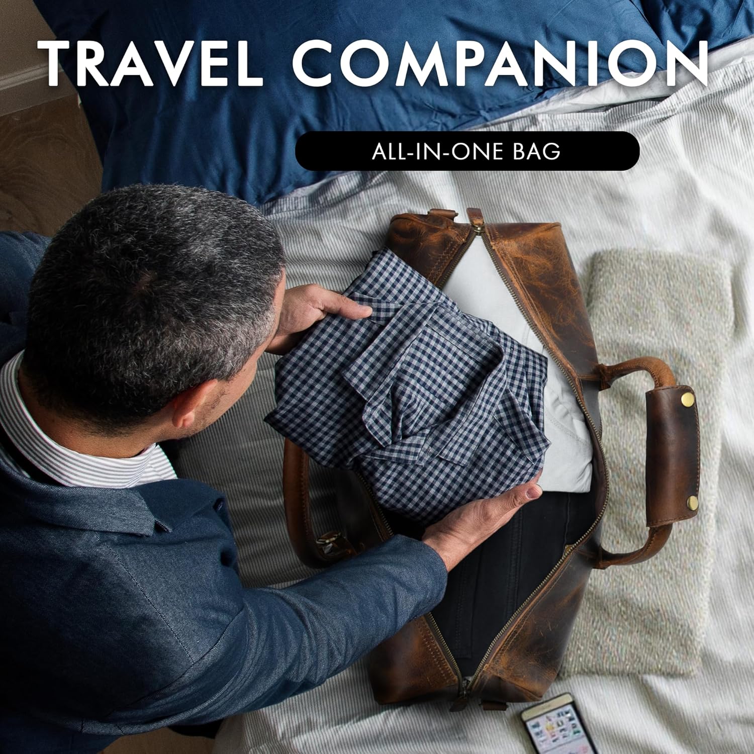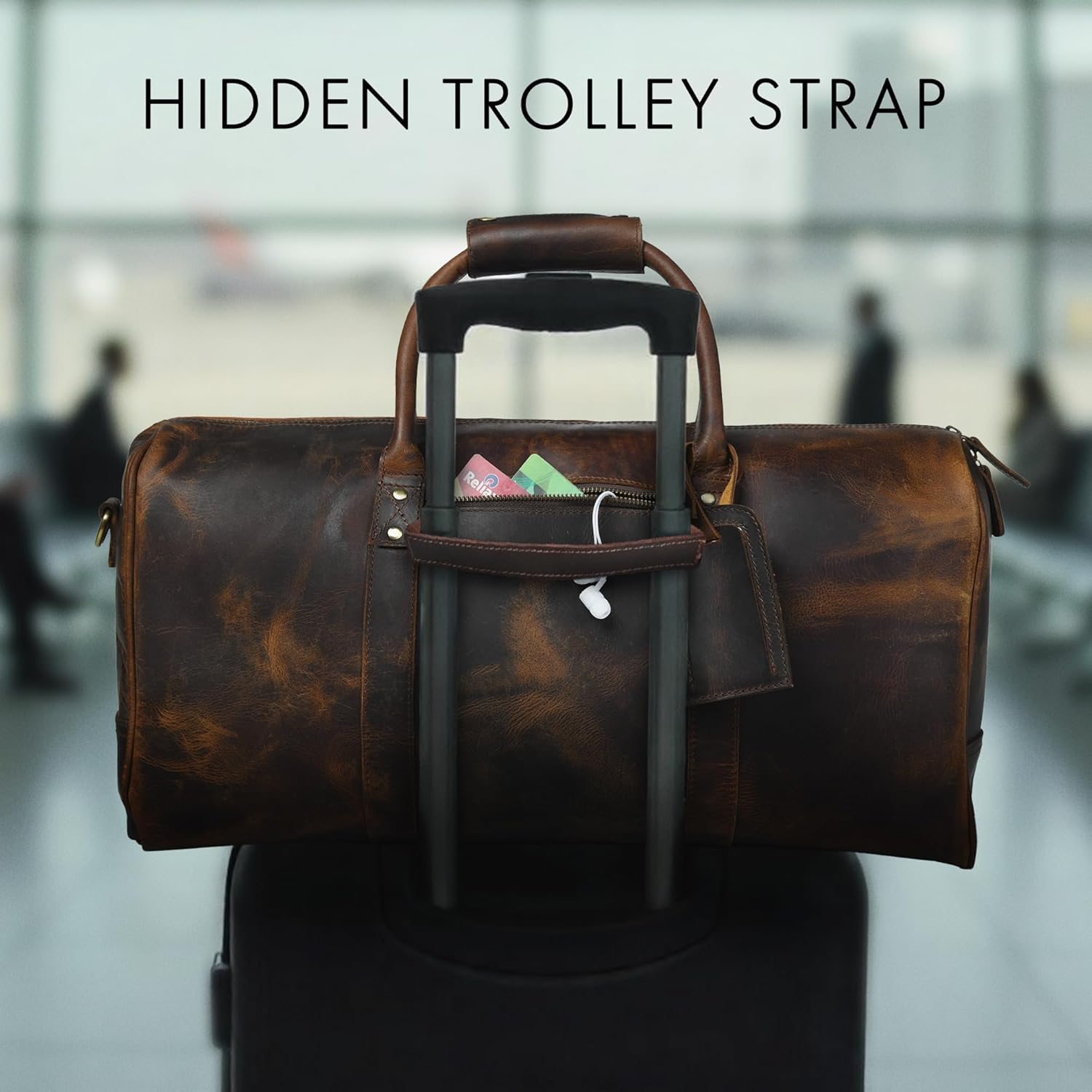 ELIZO Leather Duffle Bag For Men Women REAL FULL GRAIN Travel Overnight Weekender Carry On Luggage Sports Gym Bags (Antique 20 Inch) Nomad