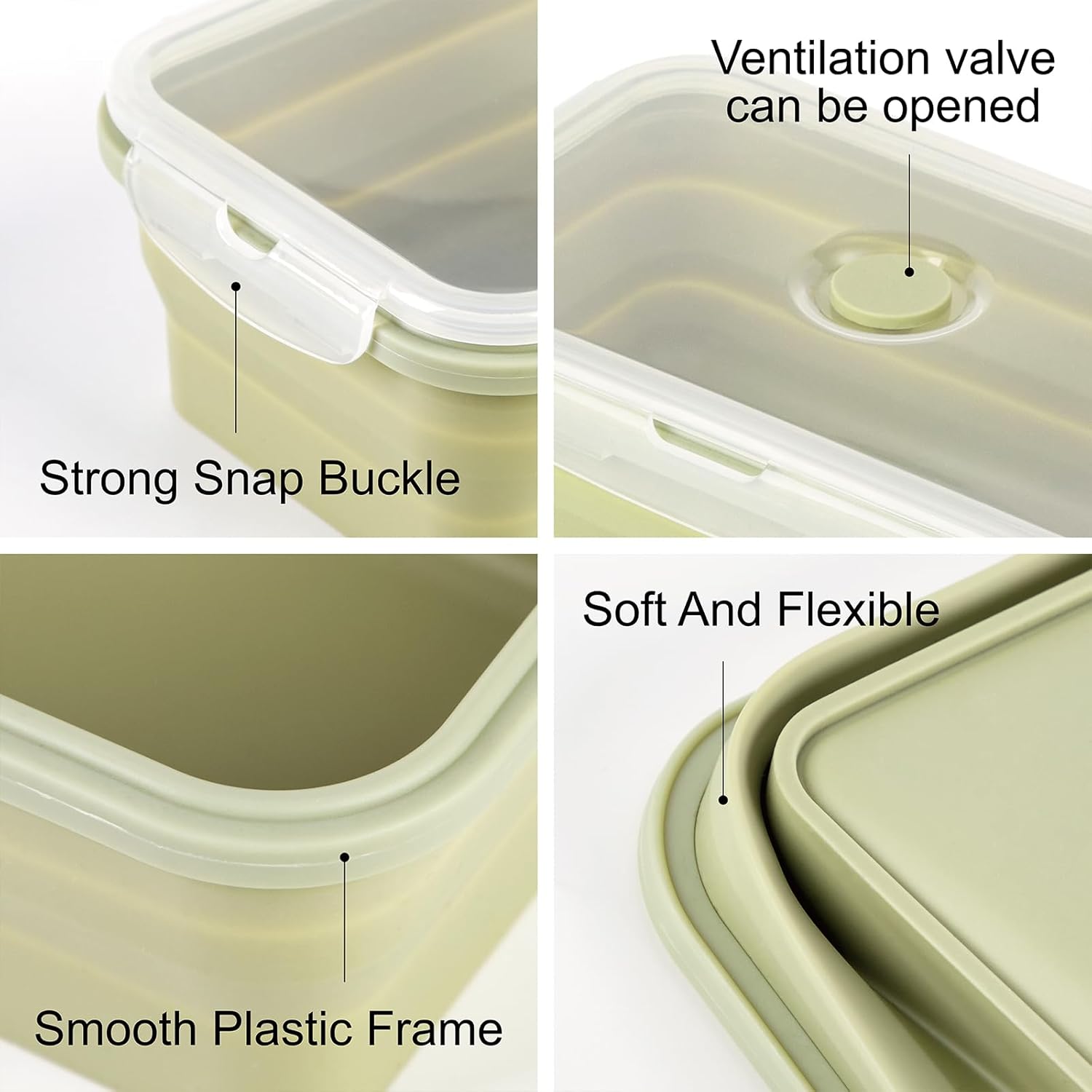 - EASY TO USE: These foldable containers are very convenient to use. They are widely used in the kitchen pantry, cabinets, cabinets, refrigerators, and are also great for RVs, camping, traveling, and taking lunch to the office or school. The foldable silicone container can be used as your meal preparation container.