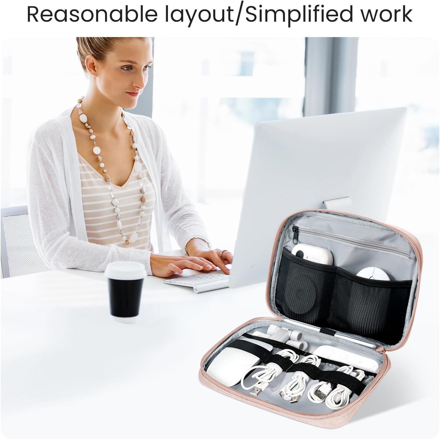 Electronics Organizer Bag, Portable Cable Organizer Case Travel Electronic Accessories Storage Case - Travel storage bag for Cables, Chargers, Phone, SD Cards - Pink