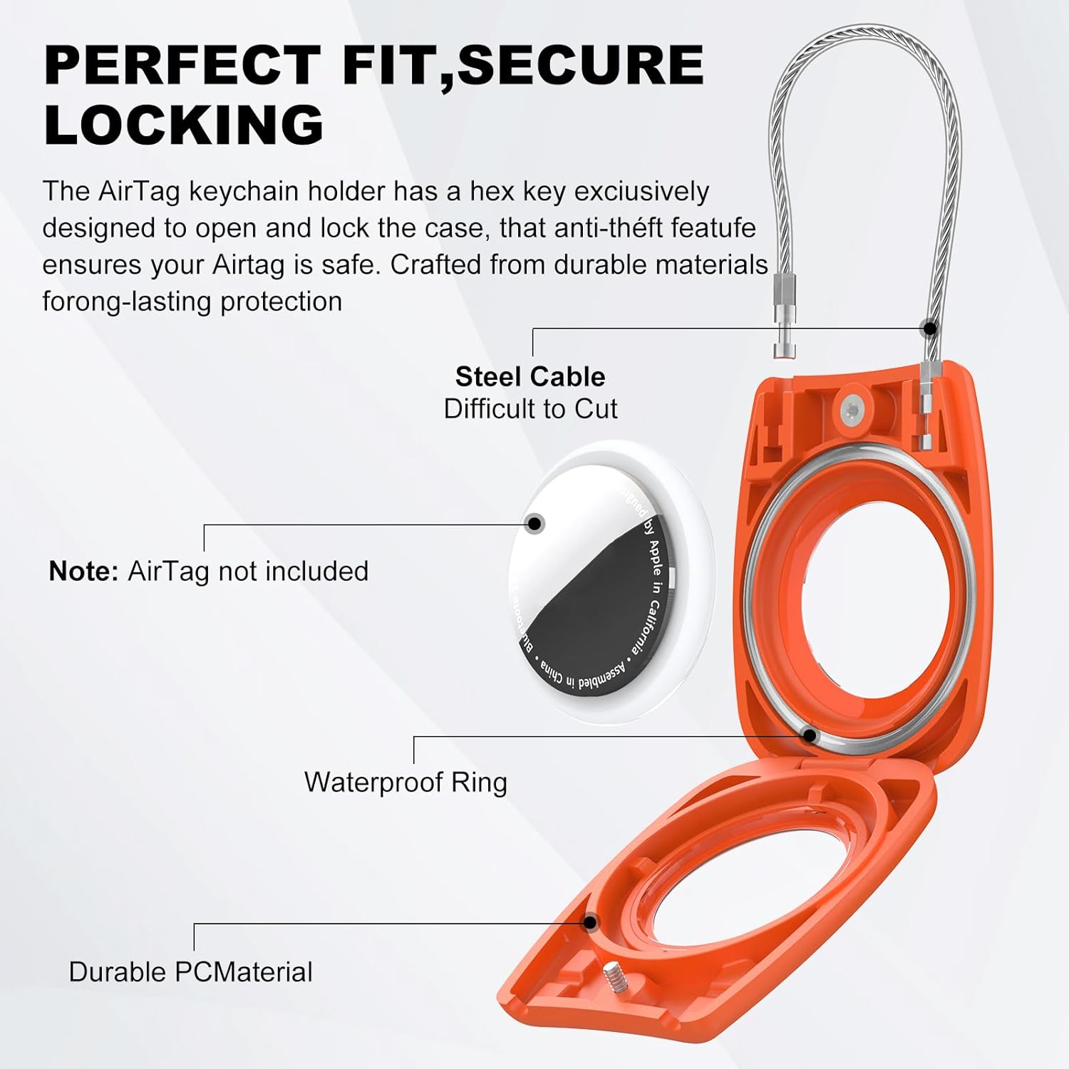- SECURE/ANTI-LOST HOLDER: Our airtag holders have a hexagonal screw locking mechanism with a sturdy braided steel cable. This ensures the AirTags are firmly and securely fastened to prevent accidental slipping or damage. The sturdy construction ensures long-lasting protection for your valuables.