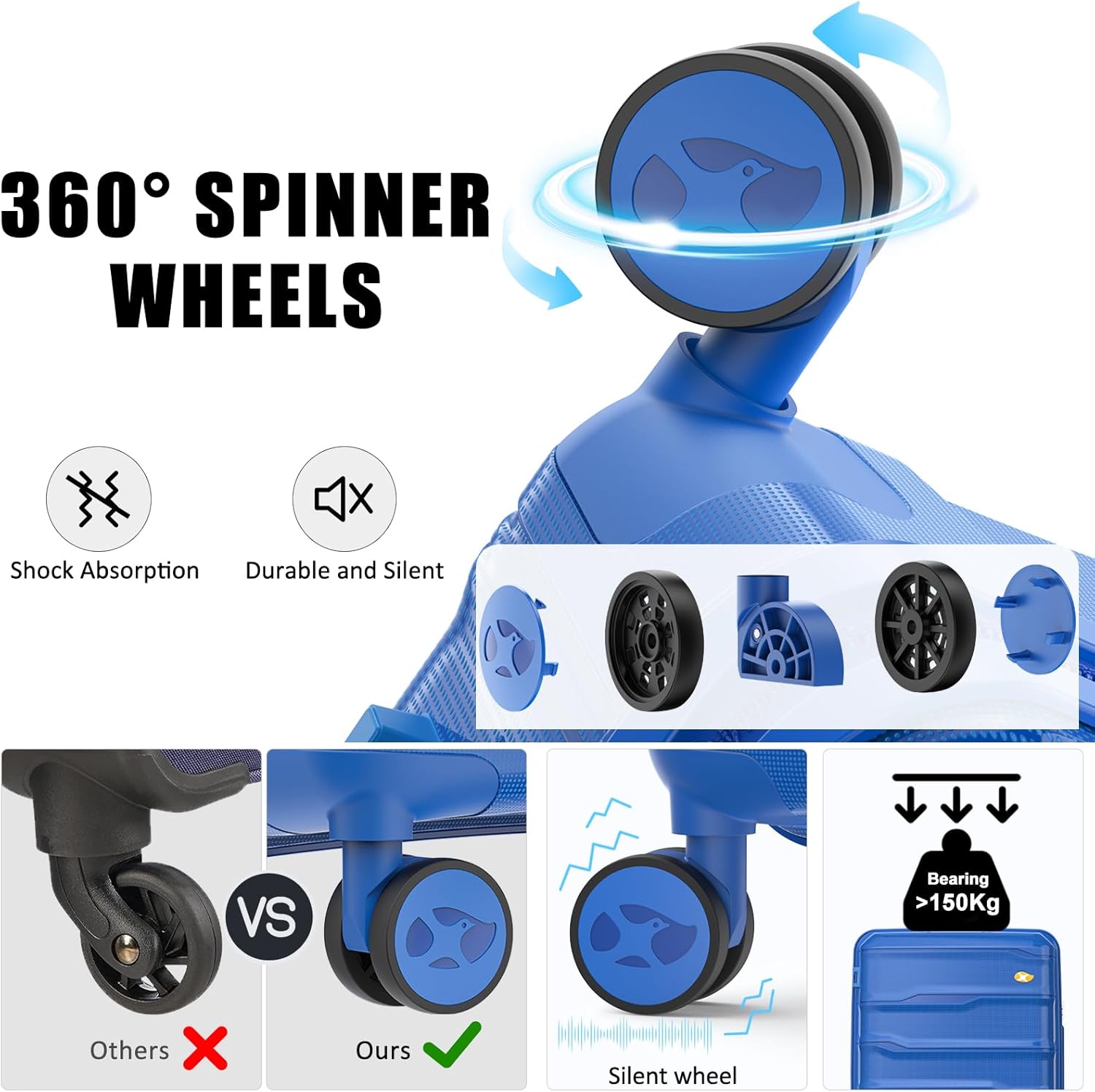 - [Reliable Handling & Effortless Mobility]: Our push-button telescoping handle adjusts to your preferred height, delivering a comfortable grip that's built to last. Experience effortless rolling on any terrain with our 8 smooth-gliding spinner wheels, ensuring a damage-free journey every step of the way.