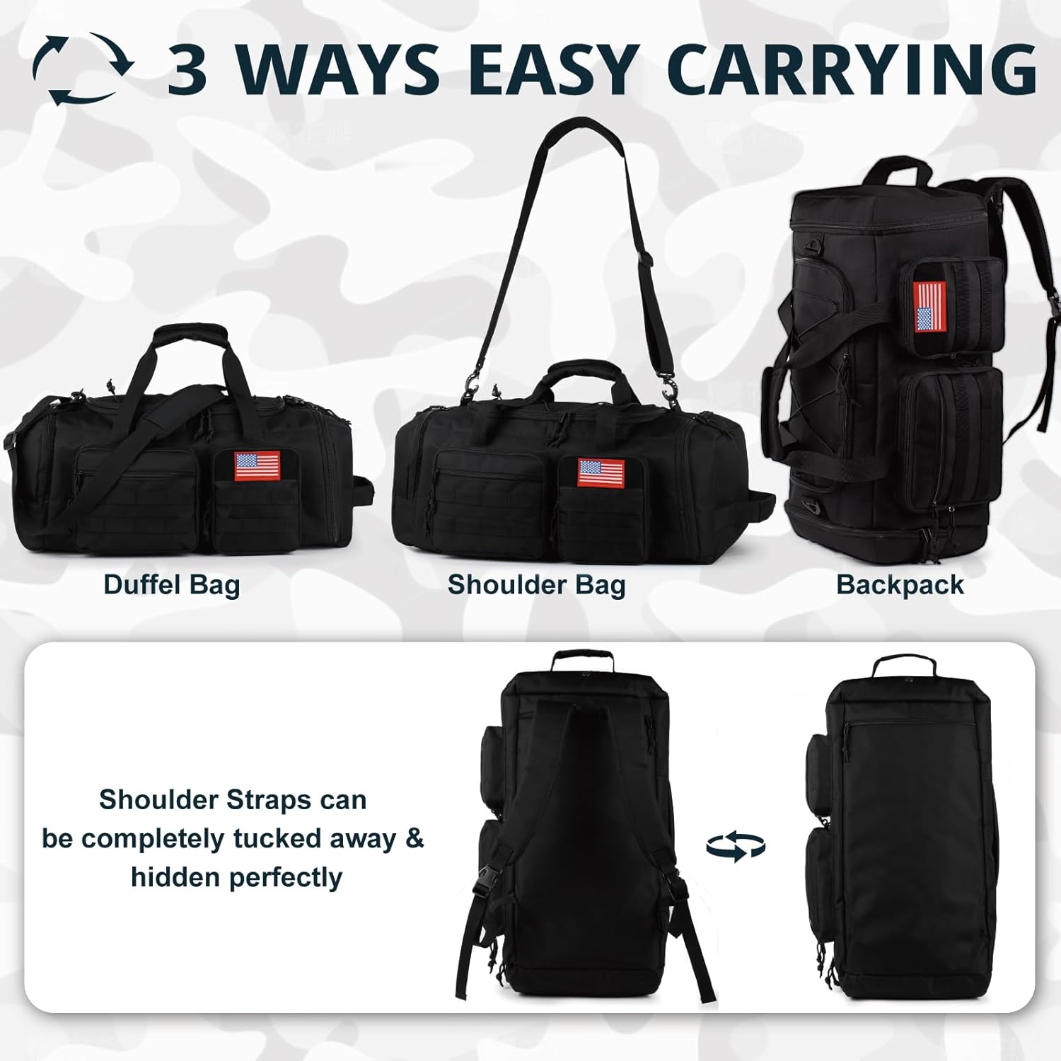 Tactical Gym Bag for Men,70L Large 3 in 1 Sports Duffle Bag with Shoes Compartment for Travel,Water Resistant Travel Backpack Weekender Overnight Bag with Wet Pocket for Women