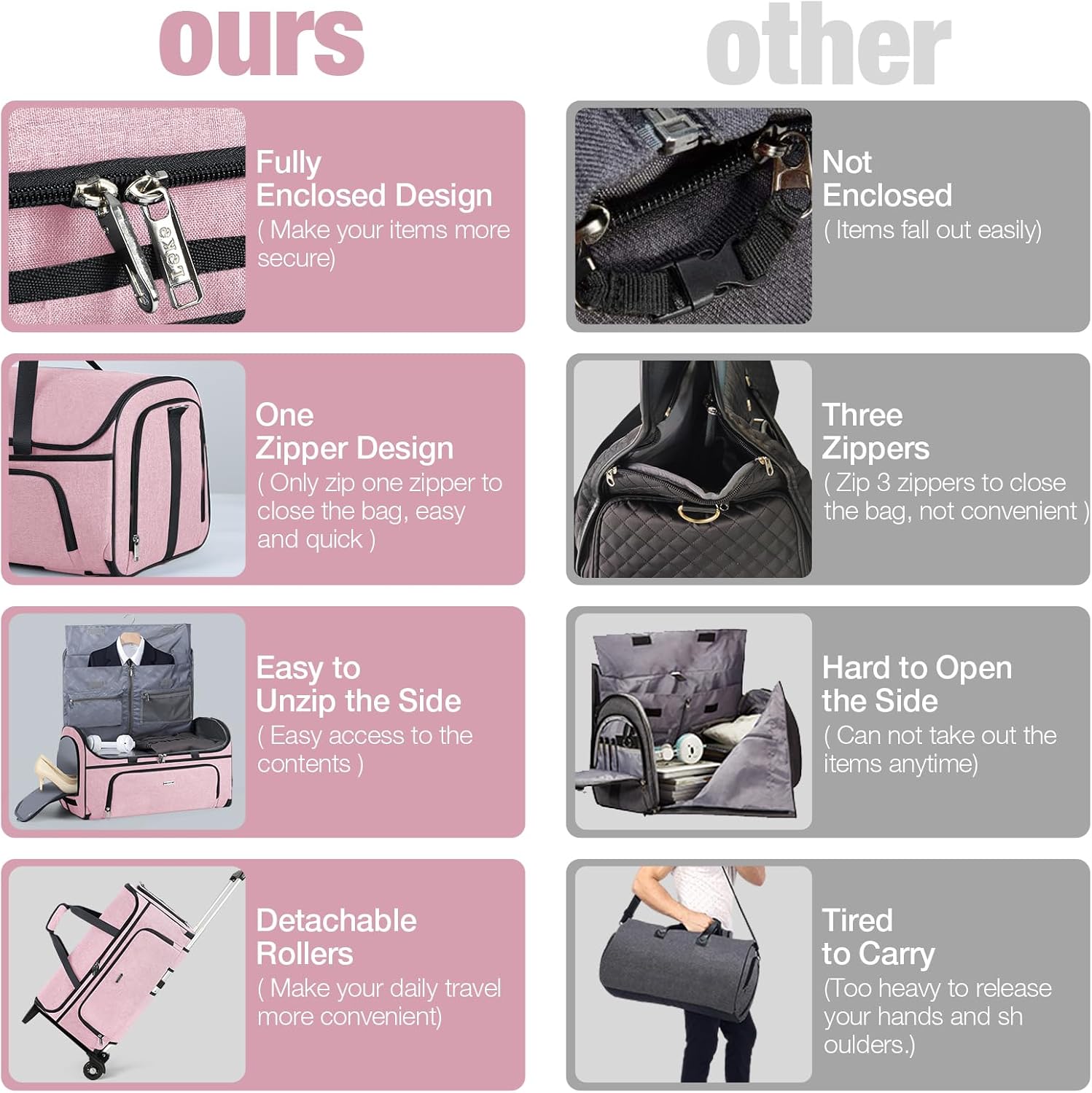 - Versatile Garment Duffel Bag: Our rolling garment bag is designed with the features of a garment bag and a duffel bag, can be used as a hanging garment bag or travel luggage bag, while keeping your suits or dresses wrinkle-free, clean and tidy