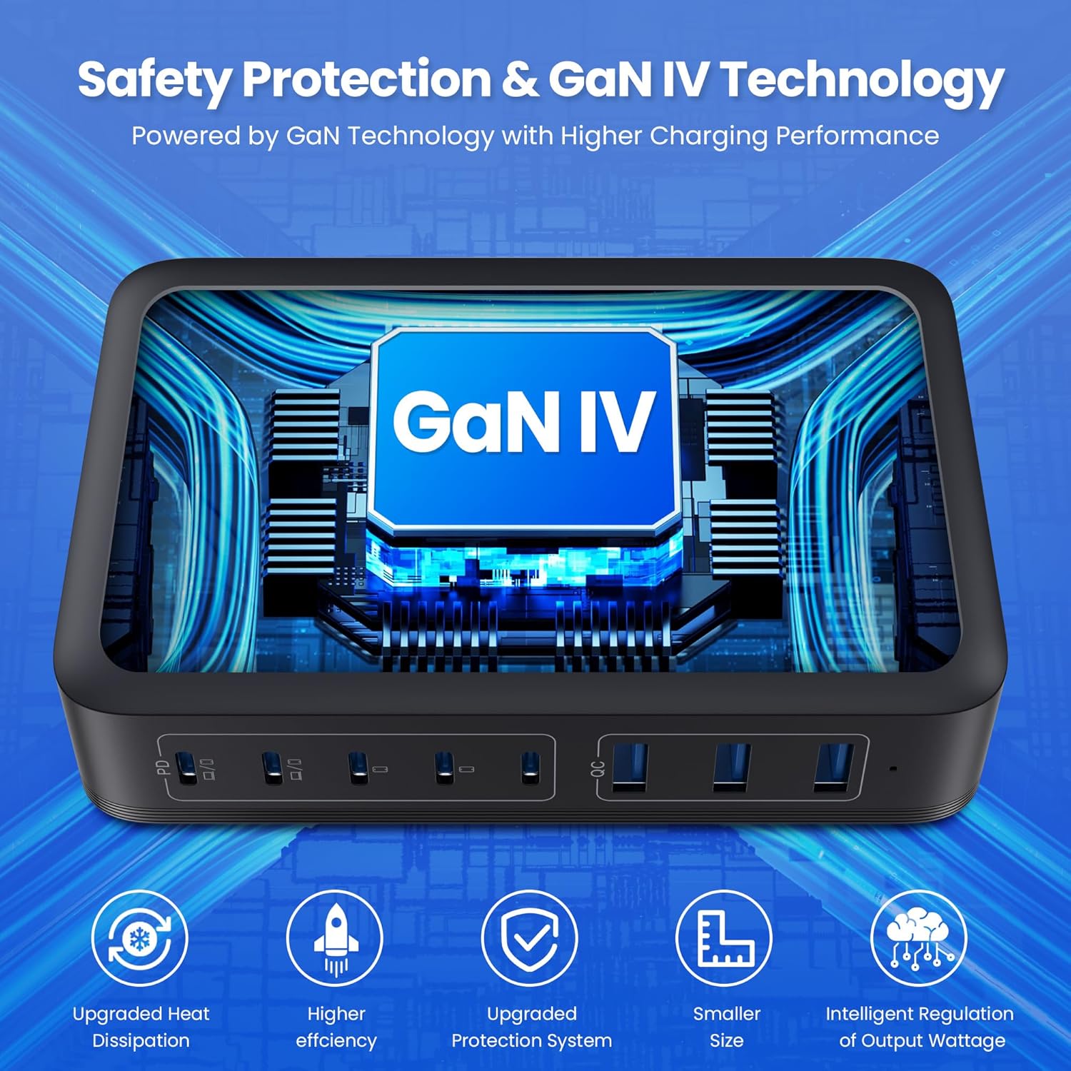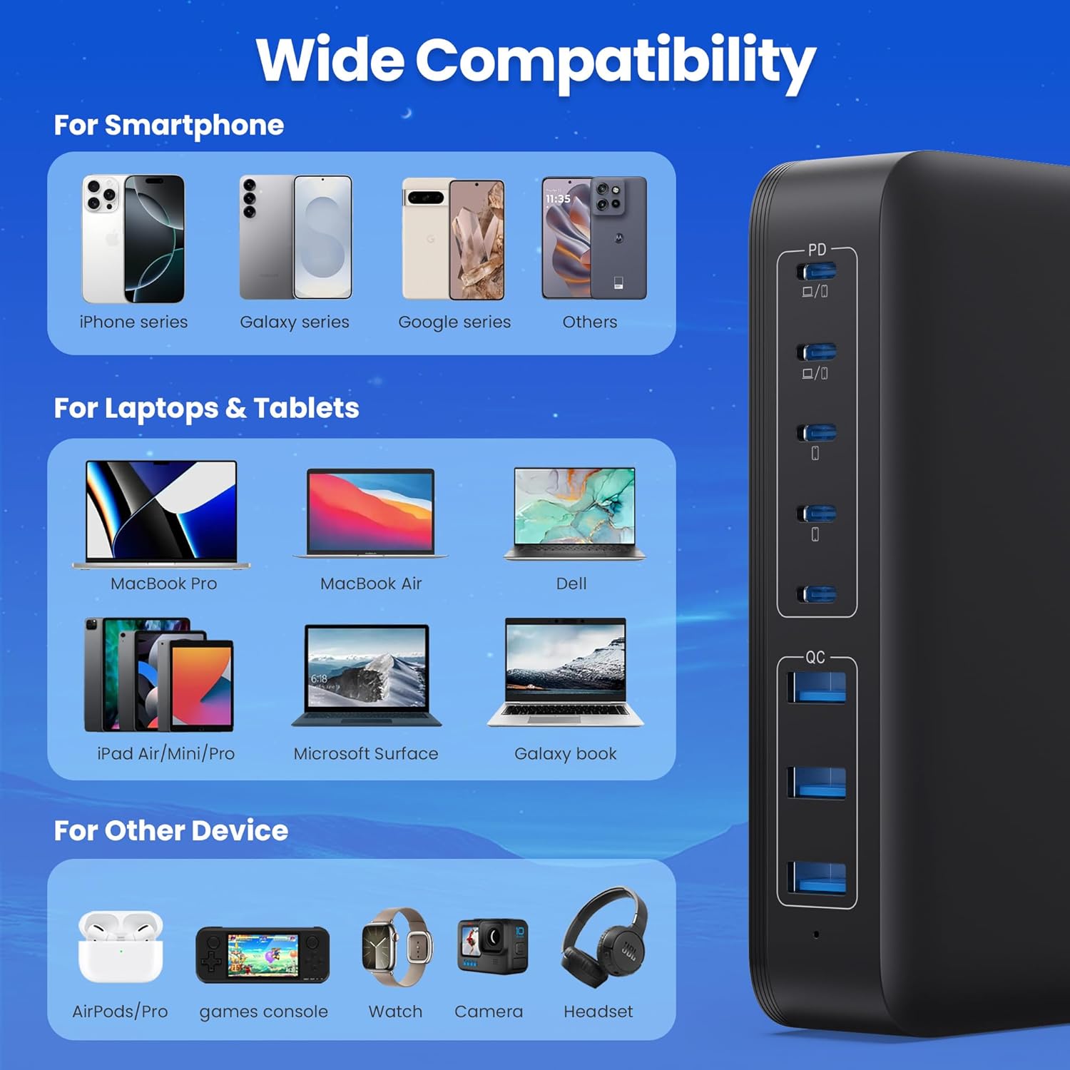 USB C Charger 415W USB C Charger Block, 8-Ports GaN IV Fast Charging Station Hub, Dual PD 100W Laptop Charger Adapter,for MacBook Pro/Air/iPad/iPhone16/15/14/Apple Watch/DELL/Samsung for Home Office