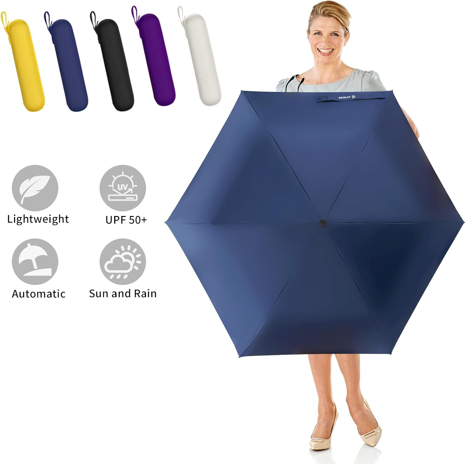 GAOYAING Compact Automatic Travel Umbrella with Case, Mini Small Folding Sun UV, Pocket Purse Umbrella