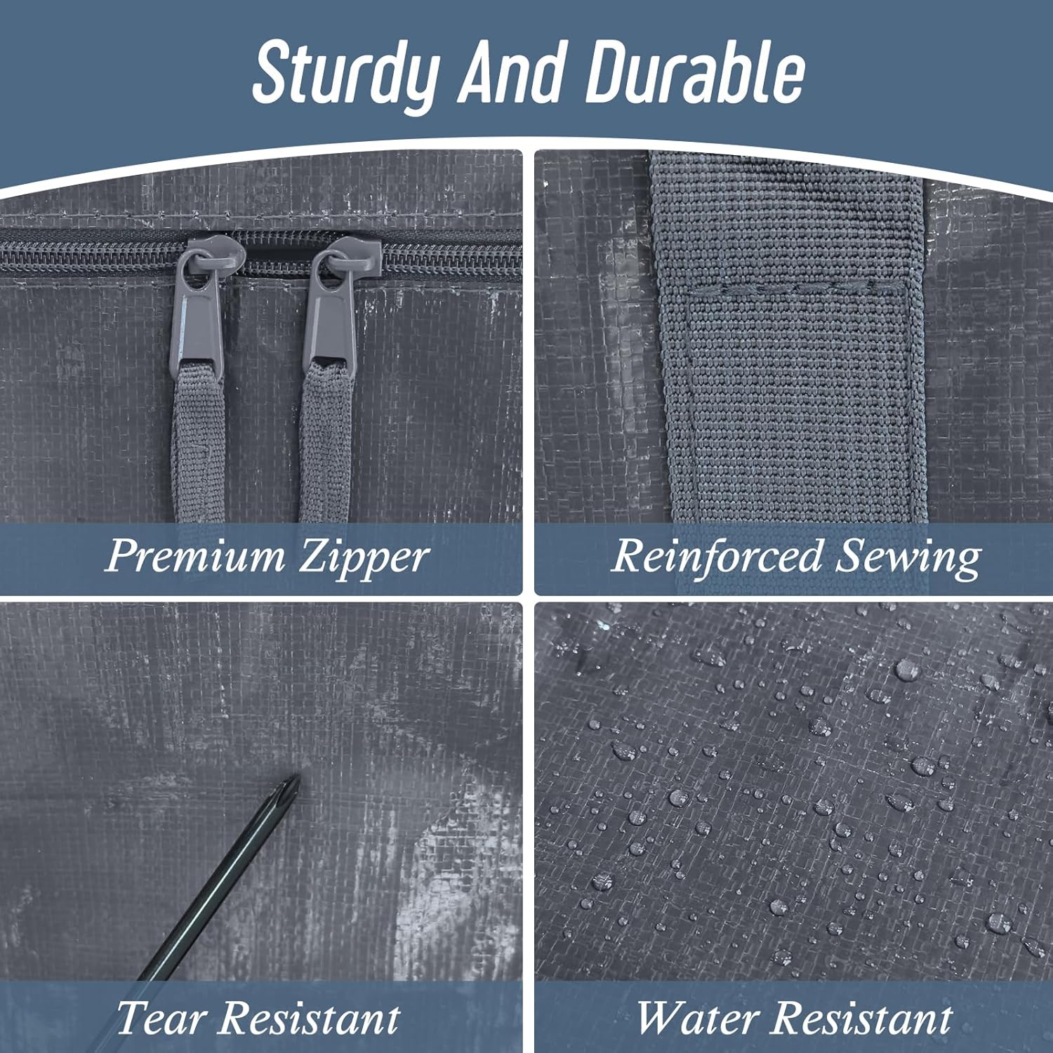 6 Pack Extra Heavy Duty Large Moving Bags with Strong Zipper & Comfortable Handles, Sturdy & Durable Clothes Storage Bags Totes Bins, Packing Moving Boxes for College Supplies, Gray