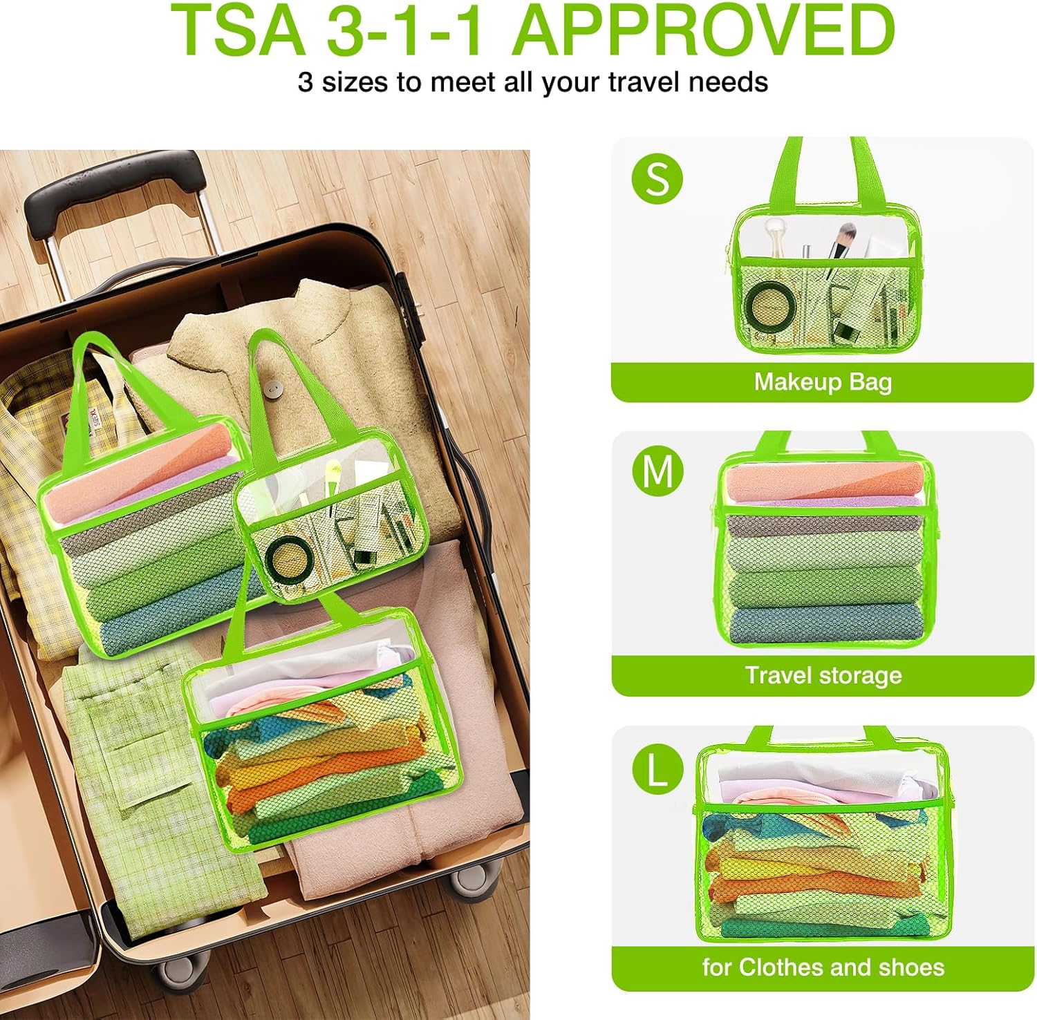 - 【Clear & TSA Approved for Travel】XEWEA 3 Pack Clear Toiletry Bags are following TSA 3-1-1 rules.and in order to meet the needs of different occasions, we have designed 3 sizes—Large (12 x 9.4 x 3.5 in), Medium (9.8 x 8.3 x 2.8 in), and Small (7.5 x 5.9 x 2.4 in). ❀Therefore, please check the sizes before purchasing to avoid inconvenience. Thanks!❀