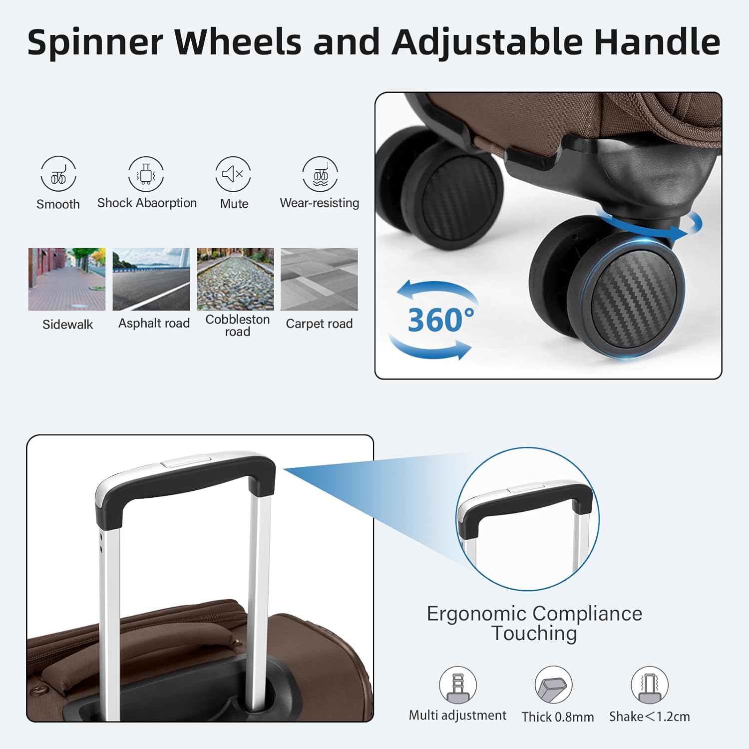 - Smooth Mobility & Durability:Suitcases with wheels equipped with 4 silent dual spinner wheels for 360° effortless maneuverability and a retractable telescopic handle for adjustable height. Rolling suitcase built to withstand frequent use with reinforced corners and impact-resistant frame.