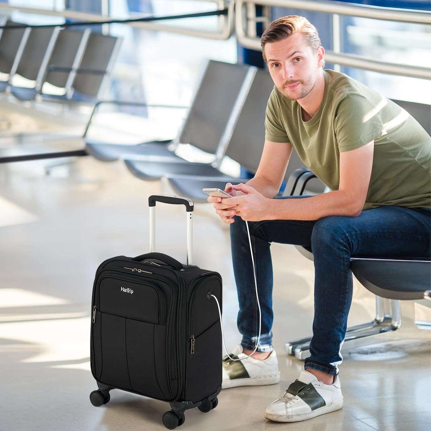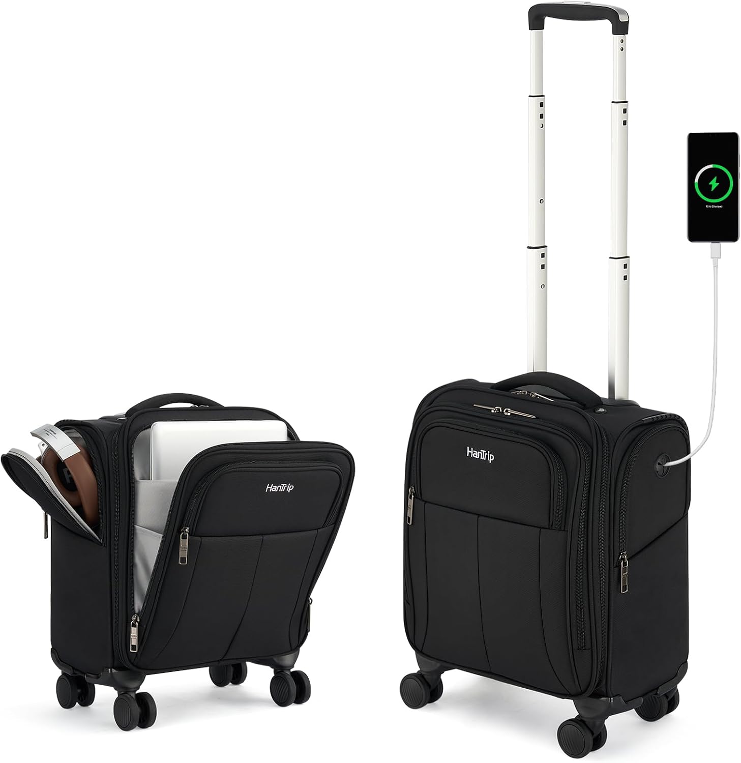 16 Inch Underseat Carry On Luggage with Wheels Softside Small Suitcases Personal Item Bag with Pocket Travel Luggage for Men Women Business Overnight Bag(Black)