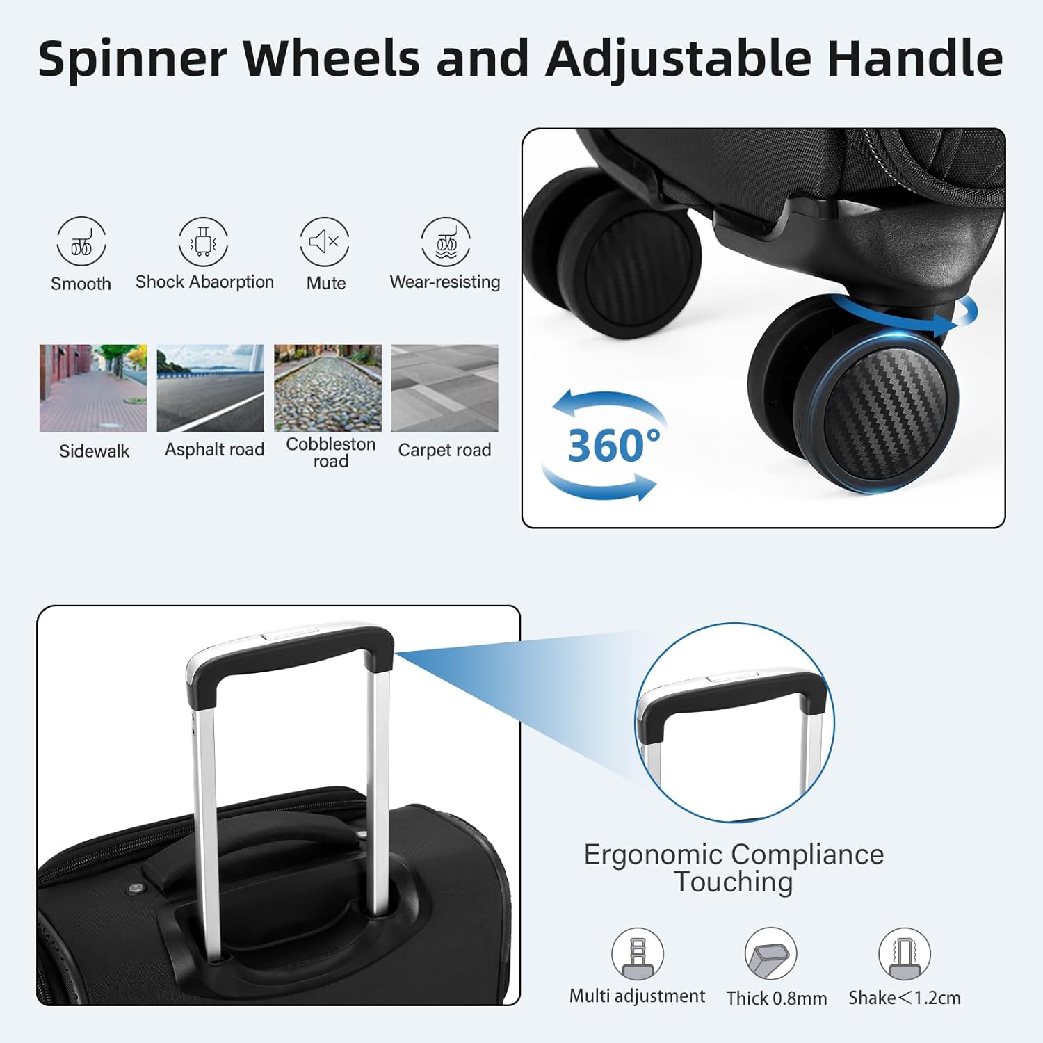 - Smooth Mobility & Durability:Suitcases with wheels equipped with 4 silent dual spinner wheels for 360° effortless maneuverability and a retractable telescopic handle for adjustable height. Rolling suitcase built to withstand frequent use with reinforced corners and impact-resistant frame.