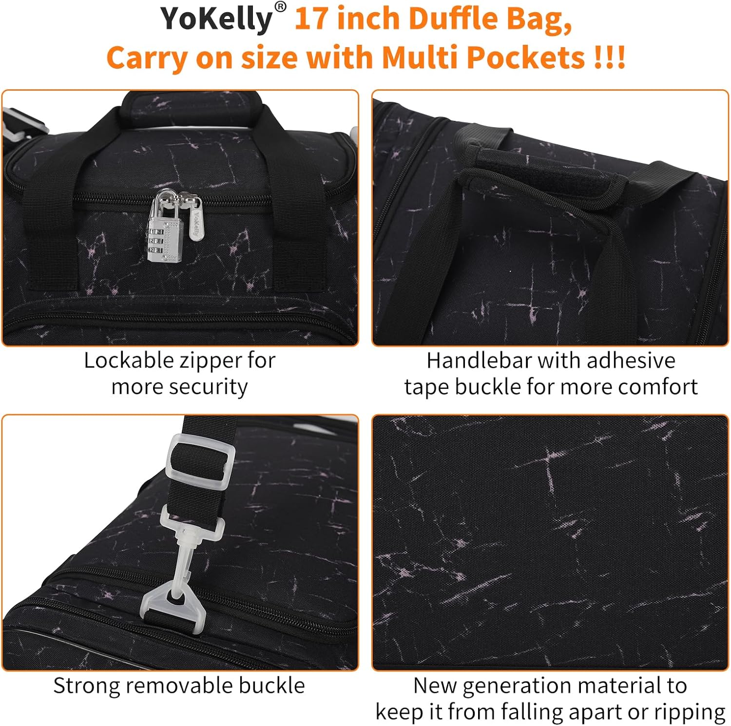 - PERFECT SIZE FOR FLIGHTS: Carry on duffel bag measures 17"×10"×9", meets the United Airlines, Spirit Airlines and Frontier Airlines' personal item size requirement. It fits under the seat when flying for saving your airline baggage fees.