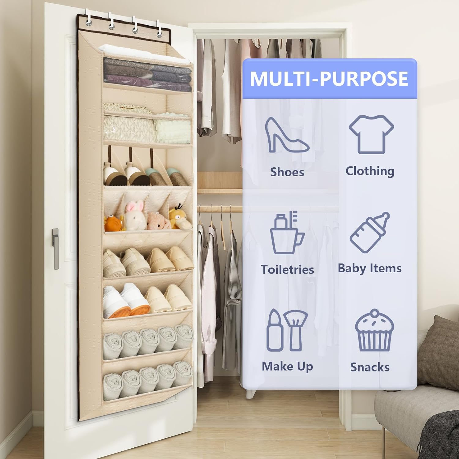 FENTEC 1 Pack Over The Door Shoe Organizer, 68" Exlarge Deep Pockets Hanging Shoe Organizers, 8-Tier Shoe Rack for Closet, Shoe Holder for Boots,Over Door Organizer in Home, RV, Dorm, Beige