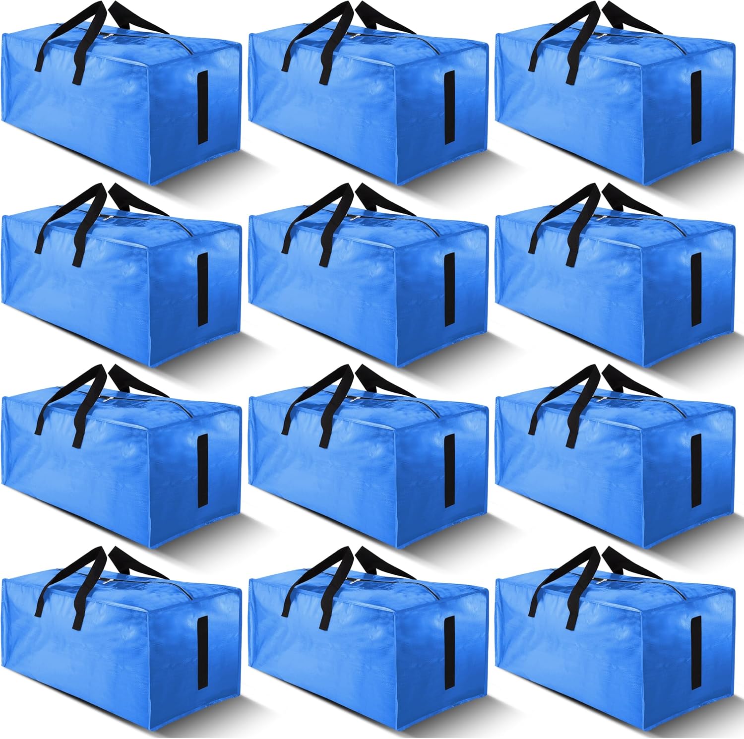 12 Pack Large Strong Moving Bags with Zippers & Carrying Handles - Water-Resistant - Heavy Duty Storage Tote for Space Saving, Fold Flat, Alternative to Moving Box (Sky Blue)