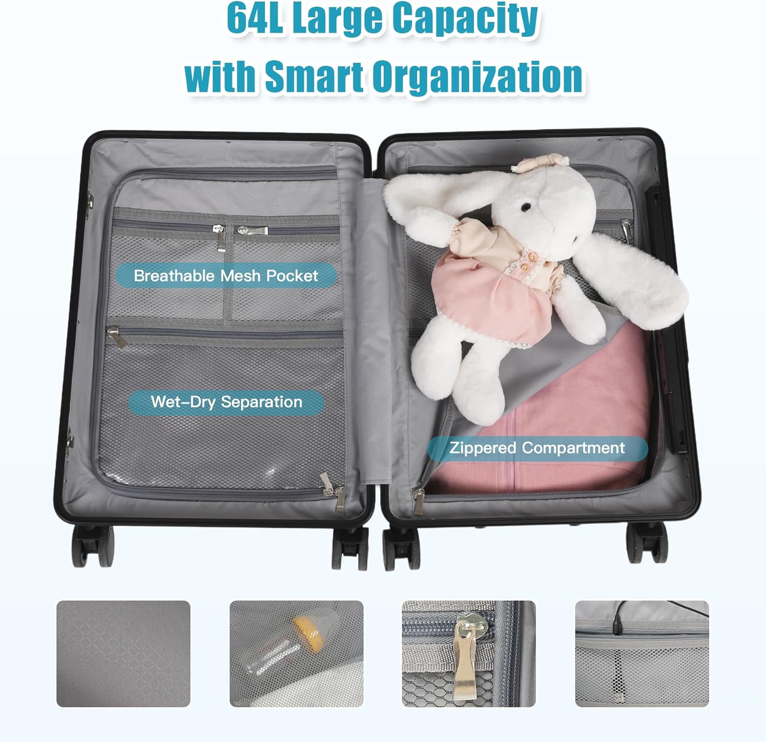 - 【Spacious and Versatile】 With a spacious 64L capacity and compact dimensions (21.8 x 16.7 x 12 inches), this carry-on luggage offers ample room for your essentials while being lightweight at just 11.7 lbs. Perfect for hassle-free travel, this suitcase is ideal for families, combining practicality with convenience.