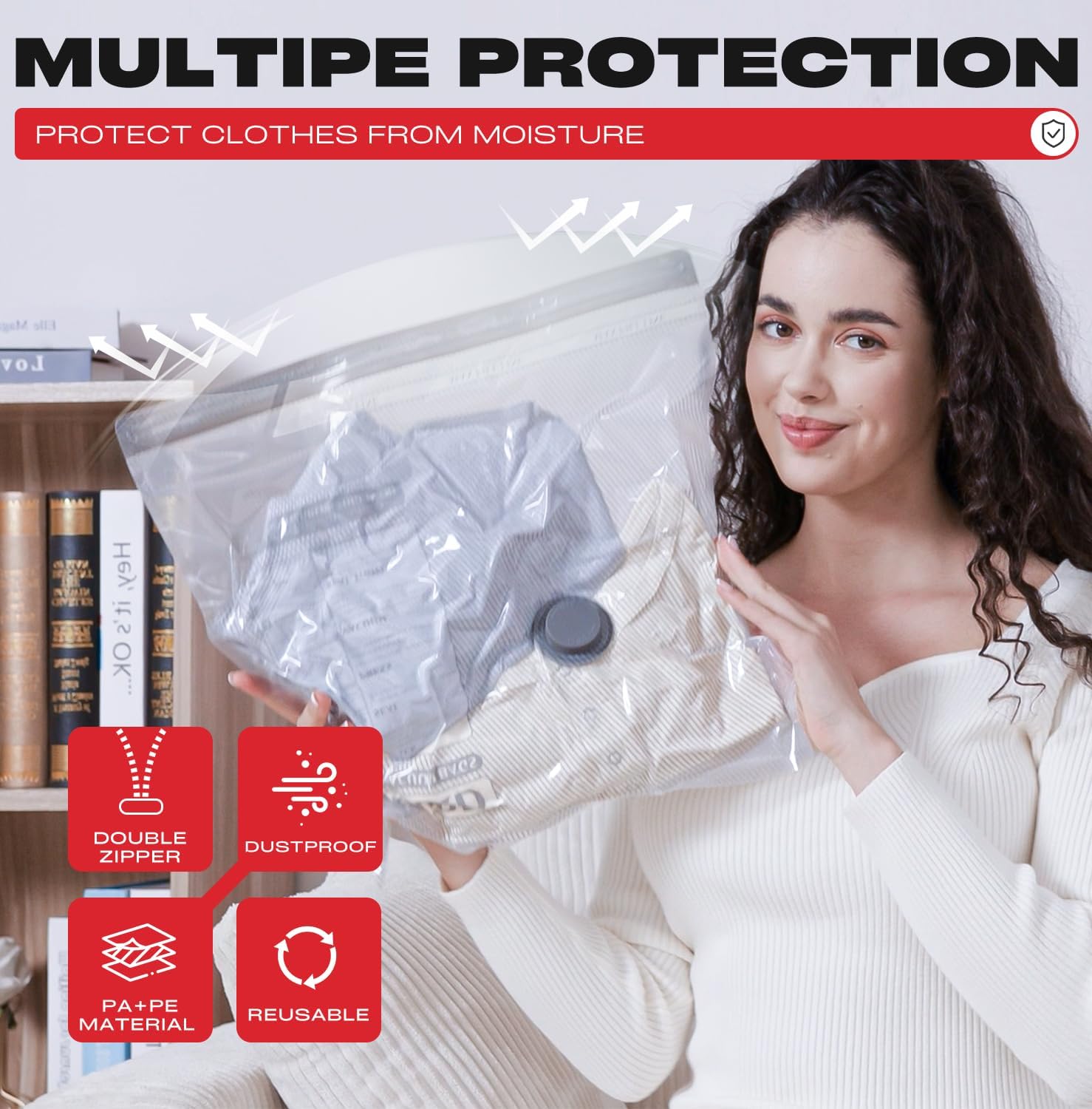 - Save Up to 80% of Space: Our vacuum seal bags are designed to help neatly organize and save space in your suitcase when travlling, store and protect your clothes for a long time, and able to pack more luggage when you travel