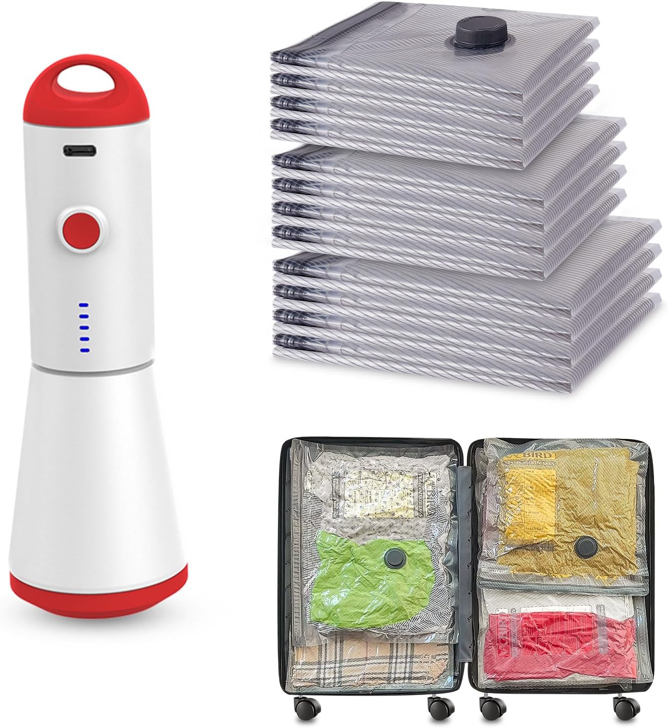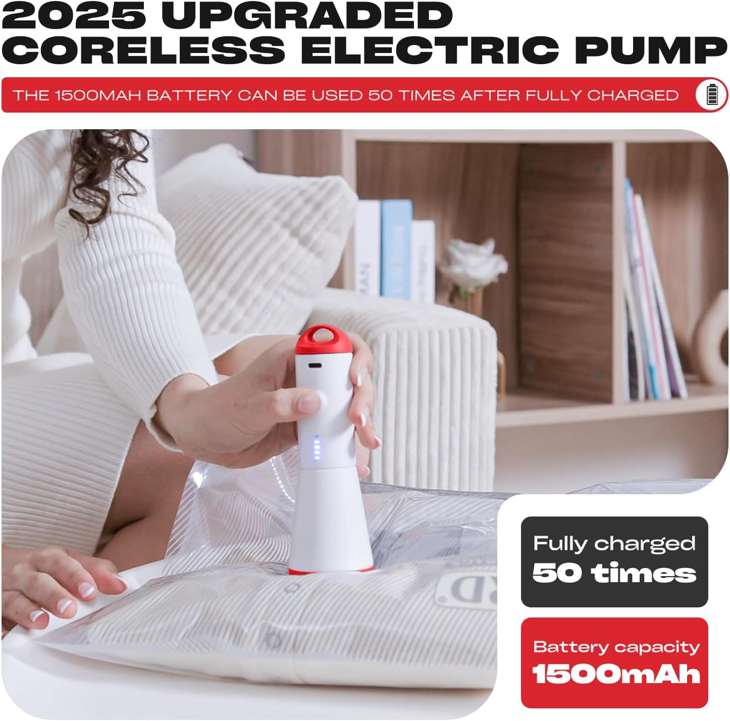 - Travel-friendly Designed: Carry-on travel size vacuum bags designed for suitcase, optimizing storage space for maximum storing clothes during your trip. Equipped with portable electric pump to quickly organize your clothing