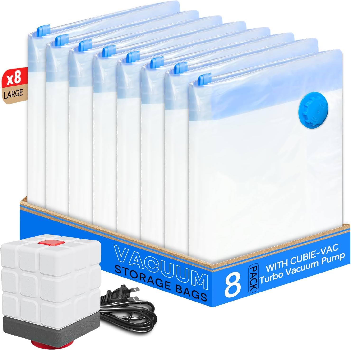 Vacuum Storage Bags for Clothing, 8 Large Vacuum Seal Bags Space Saver for Clothes, Comforters, Blankets, Bedding, Vacuum Sealer Bags with Electric Pump (2025 Upgrade)
