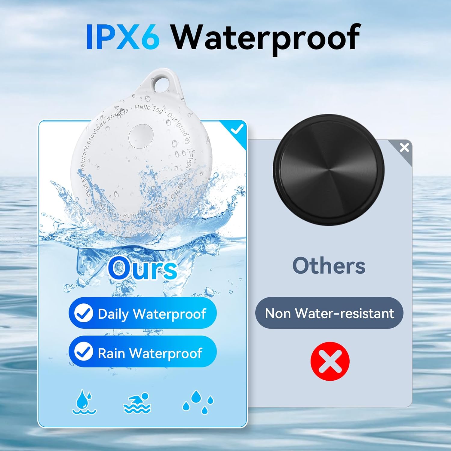 - ✅WATERPROOF & REPLACEABLE BATTERY: Replaceable battery, which extends the product’s lifespan compared to other luggage trackers that require full replacement. Battery life is excellent(up to two years), the service life is longer than other find my tracker. IPX6 Waterproof can handle splashes, rain, and brief immersion. Smart bluetooth tracker is lightweight and compact, making it perfect for keys, luggage, or even a pet’s collar