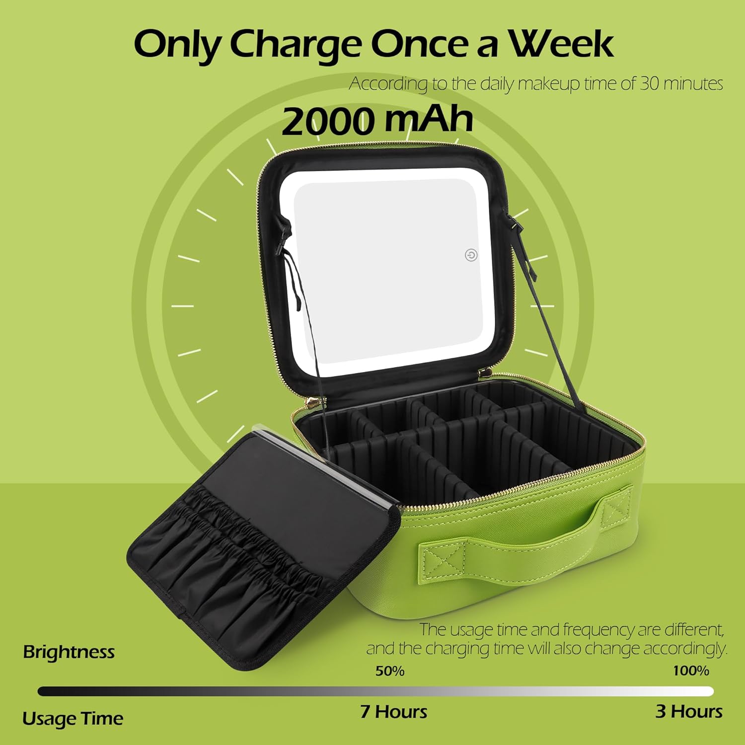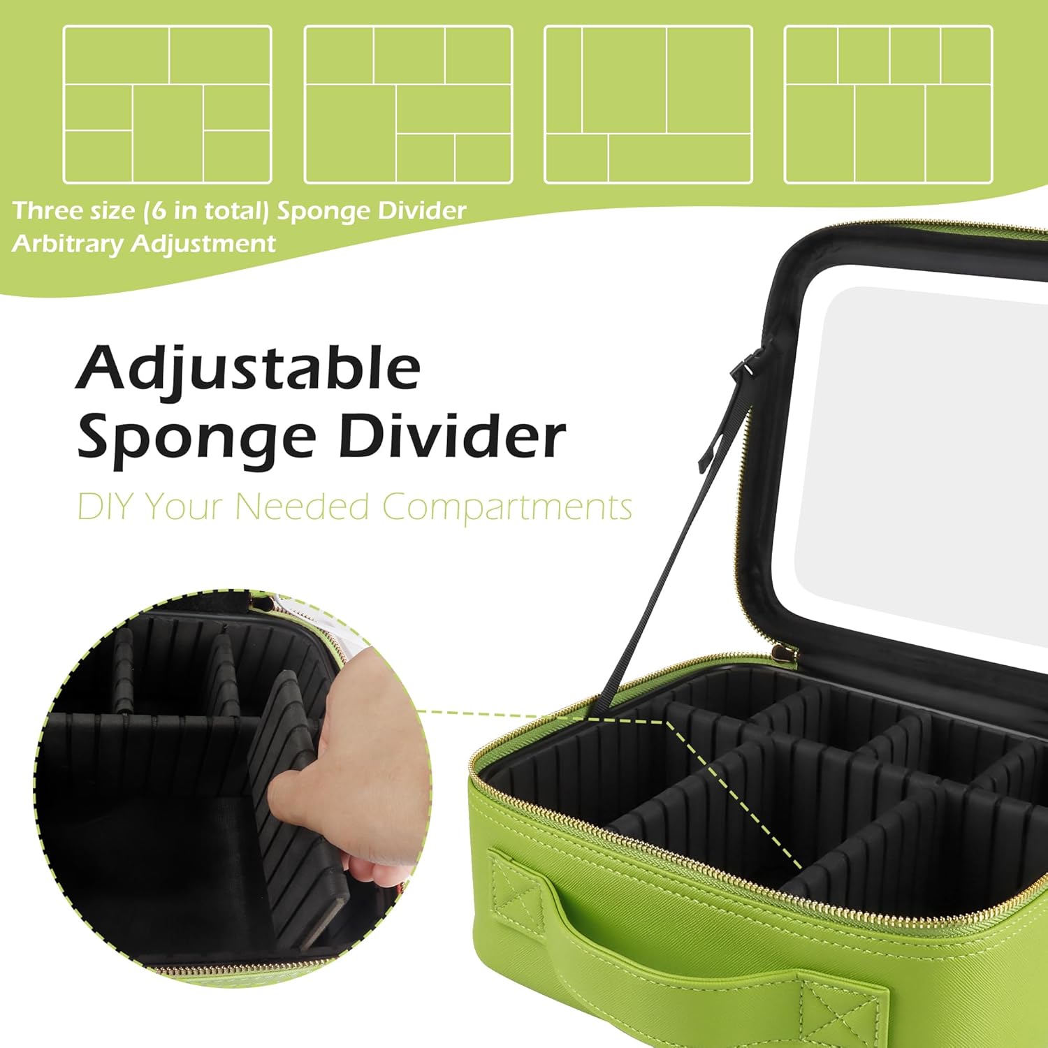 MOMIRA Travel Makeup Bag Cosmetic Bag Makeup Organizer Bag with Lighted Mirror, Adjustable Brightness in 3 Color Scenarios, Waterproof Makeup Train Case, Gift for Women - Grass Green