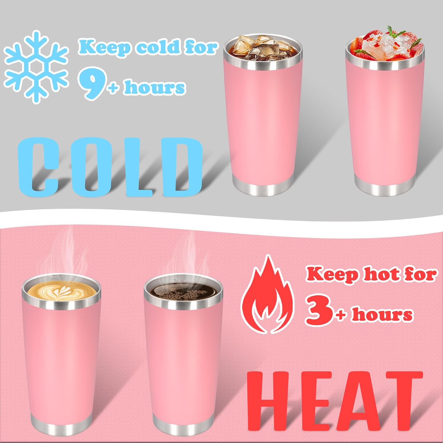 20 oz Tumbler with lid Double Wall Vacuum Insulated Tumblers Stainless Steel Coffee Mug Travel Coffee Tumbler Powder Coated Tumbler Cup Keep Hot&Cold - (Pink 6 Pack)