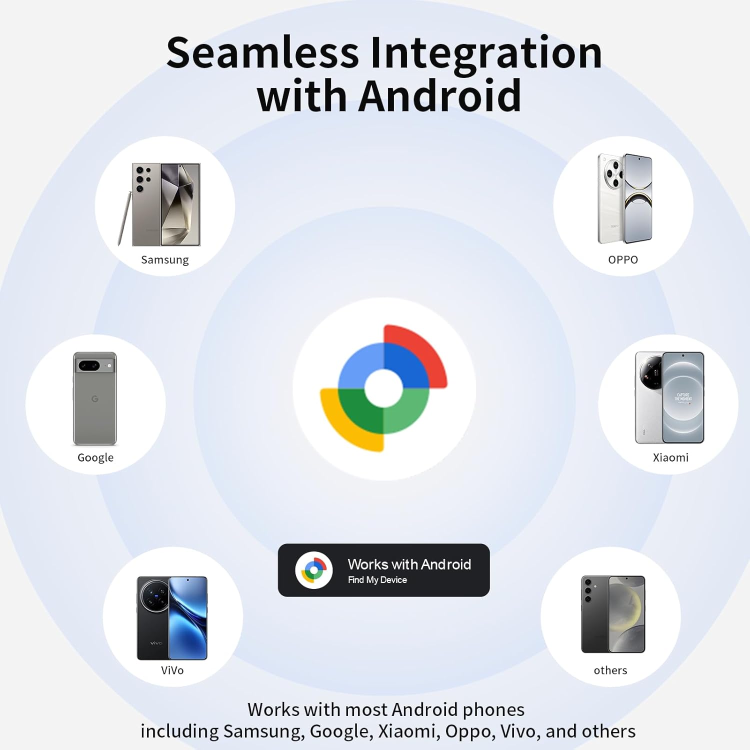 - Full Android Compatibility, Seamless Connection:Specially optimized for the Android system, supporting Android 9.0 and above versions, one click Bluetooth 5.2 quick pairing, compatible with 99% Android phones/tablets. Google Certified,no need for additional apps, instantly locate through Google Find My Device.