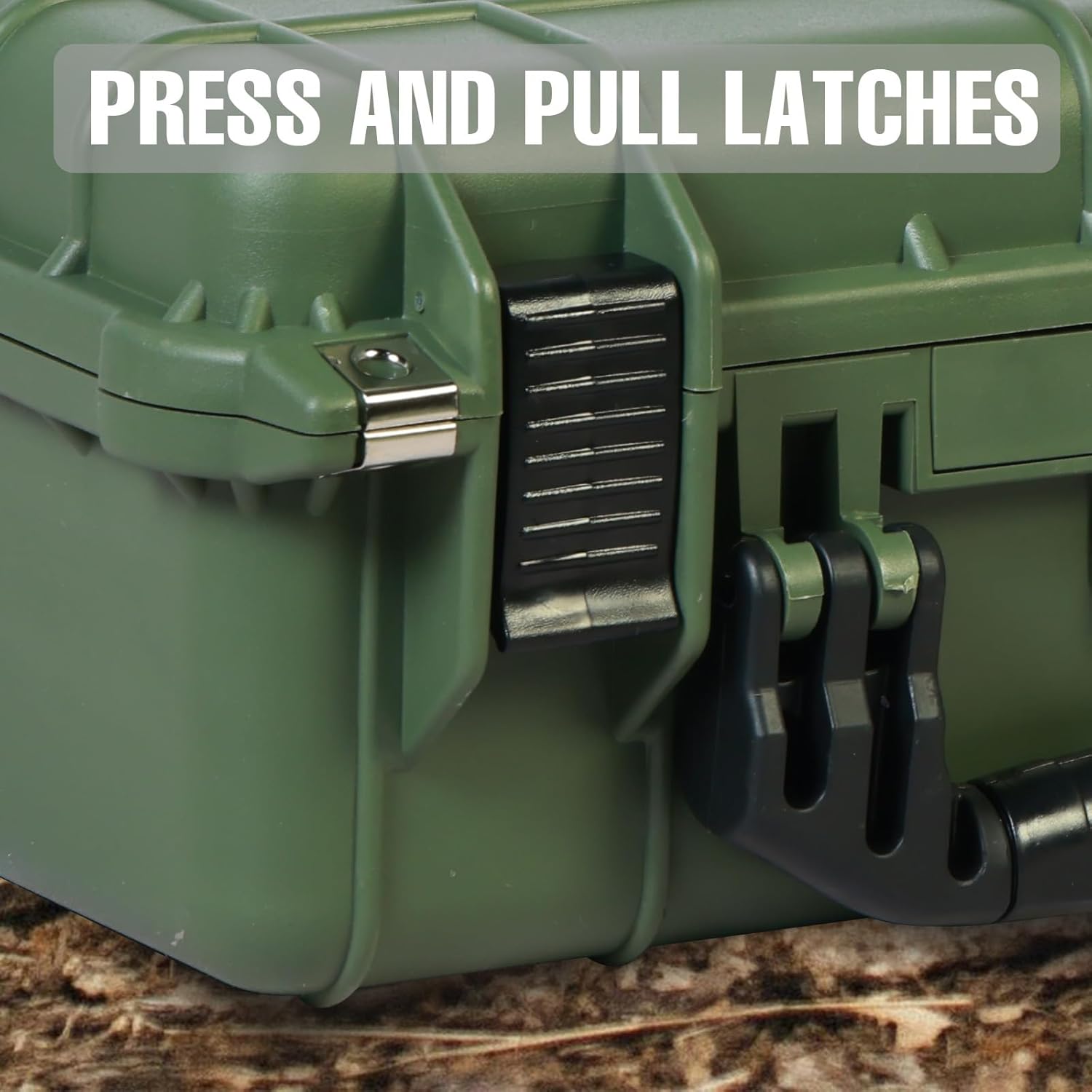 16x 12.8x 6.8 Inch Hard Case, Portable Weather Waterproof Protective Camera Case with Customizable Foam, Fit Use of Drones, Camera, Equipments, Green