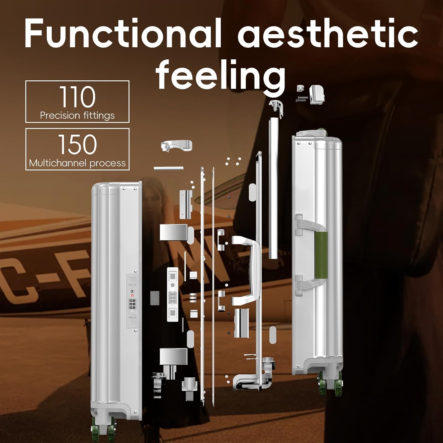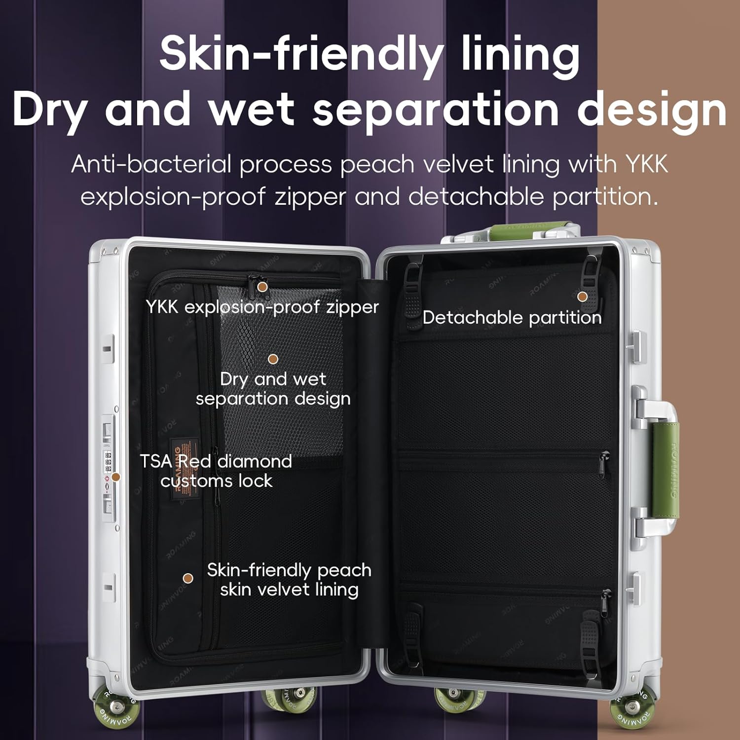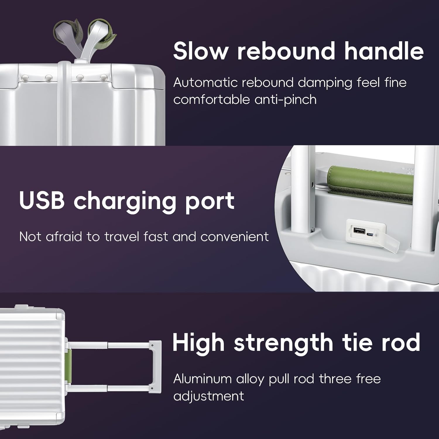Roaming Carry on Luggage, 20 Inch Durable Aluminum Zipperless Luggage Airline Approved, Hardside Suitcase with TSA Lock USB Port and Spinner Wheels, Smart Organizational Pockets Maximize Packing Space