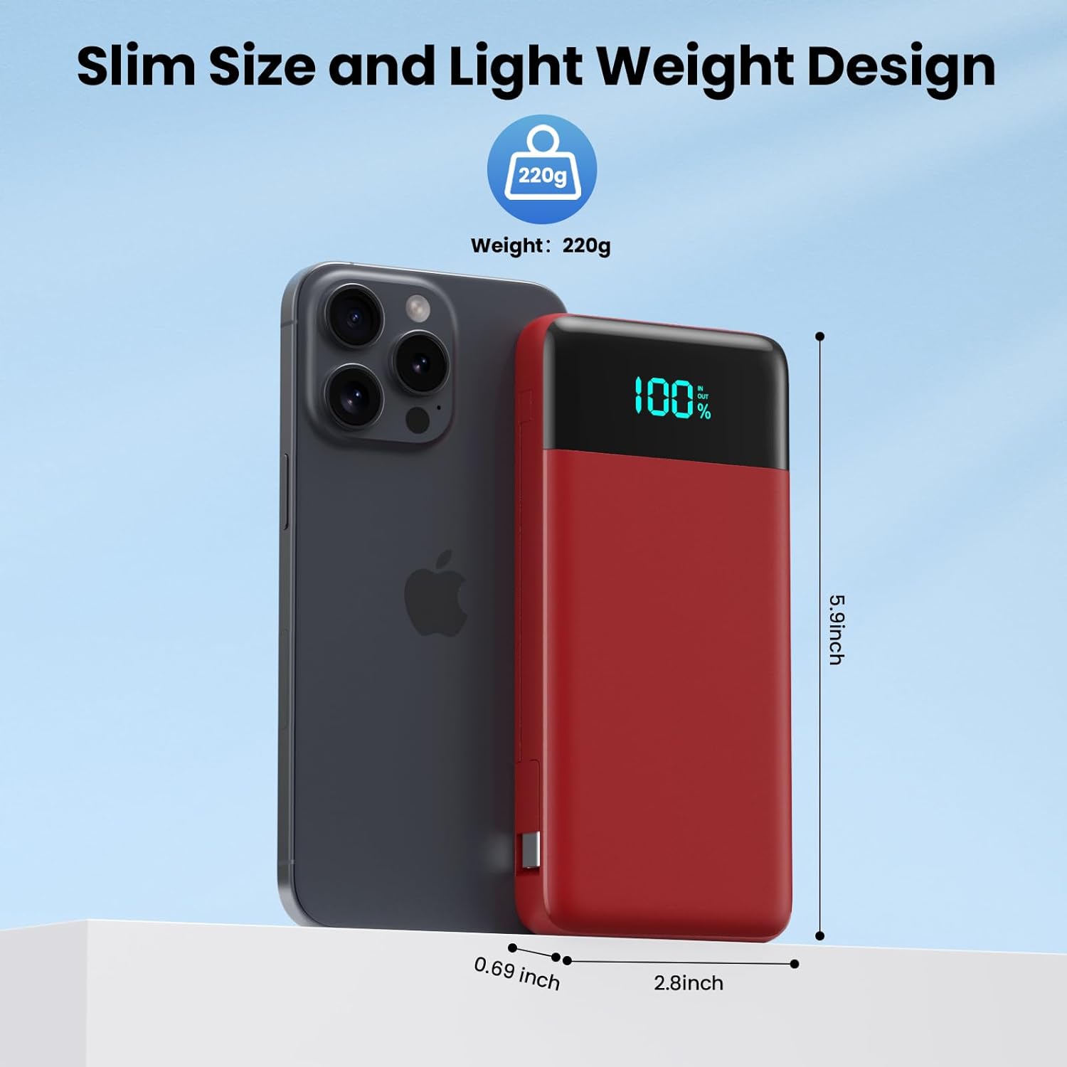 - Special Feature : Portable Charger Power Bank with Built in Cables and AC Wall Plug for iPhone 15/14/13/12/Android, Travel Essential External Battery Pack ,PD USB C Fast Charging Power Bank, Airline Approved Safety Travel USB-C Charger,No need Carry Extra Cable and Adapter , 2 Ways to Recharging Power Bank Portable Charger Power Bank with Built in Cables and AC Wall Plug for iPhone 15/14/13/12/Android, Travel Essential External Battery Pack ,PD USB C Fast Charging Power Bank,⌠See more