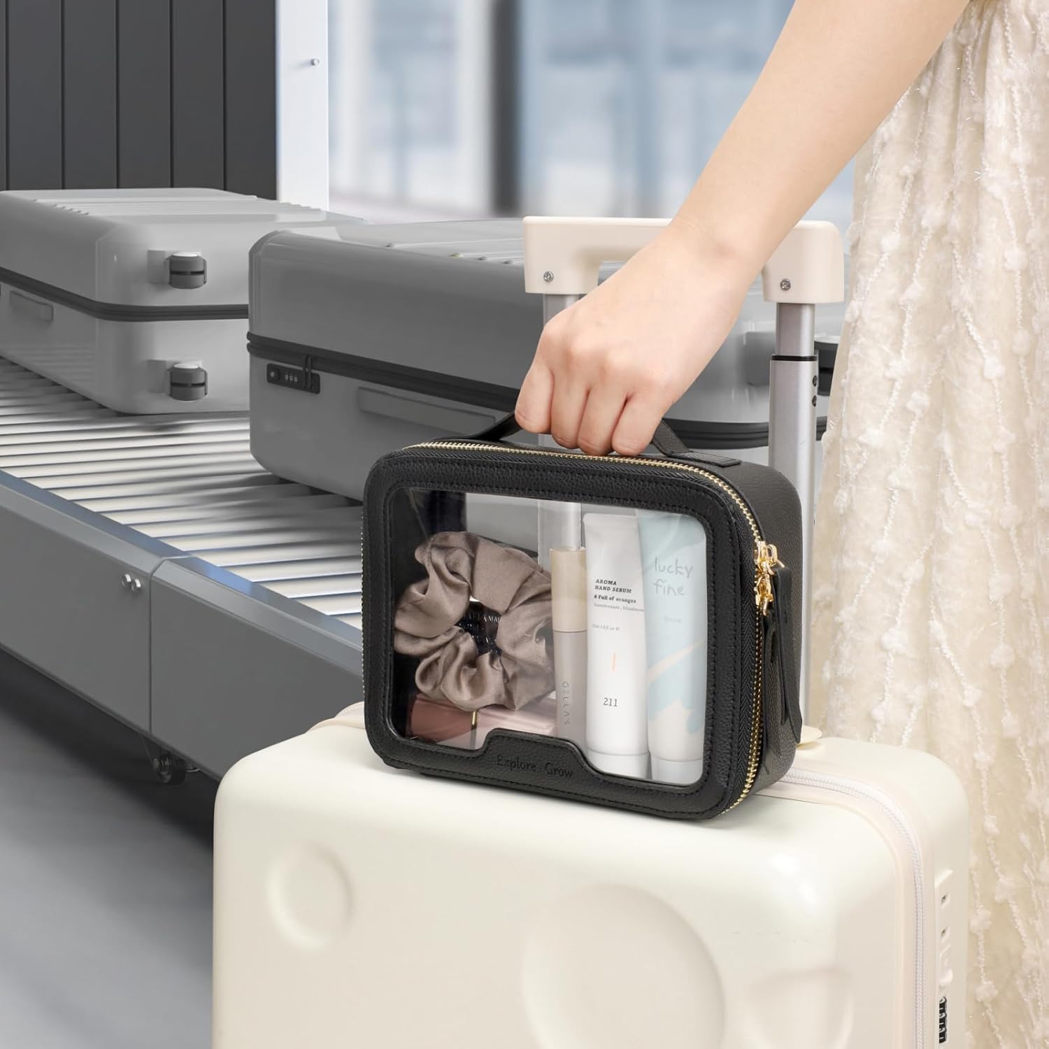 - Premium Quality: This premium-quality clear tsa approved toiletry bag features a 180° wide opening for quick, easy access to all your essentials. The reinforced PU leather and soft transparent plastic make it tear-resistant, splash-proof, and a breeze to clean