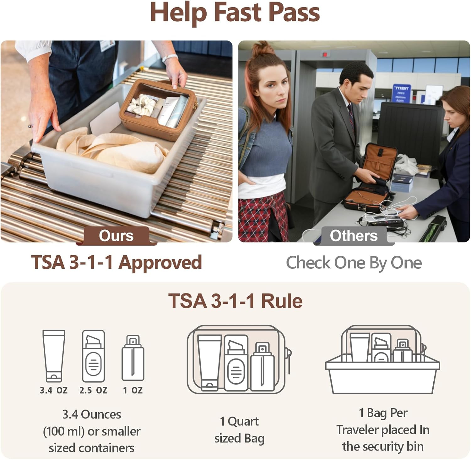 - Premium Quality: This premium-quality clear tsa approved toiletry bag features a 180° wide opening for quick, easy access to all your essentials. The reinforced PU leather and soft transparent plastic make it tear-resistant, splash-proof, and a breeze to clean