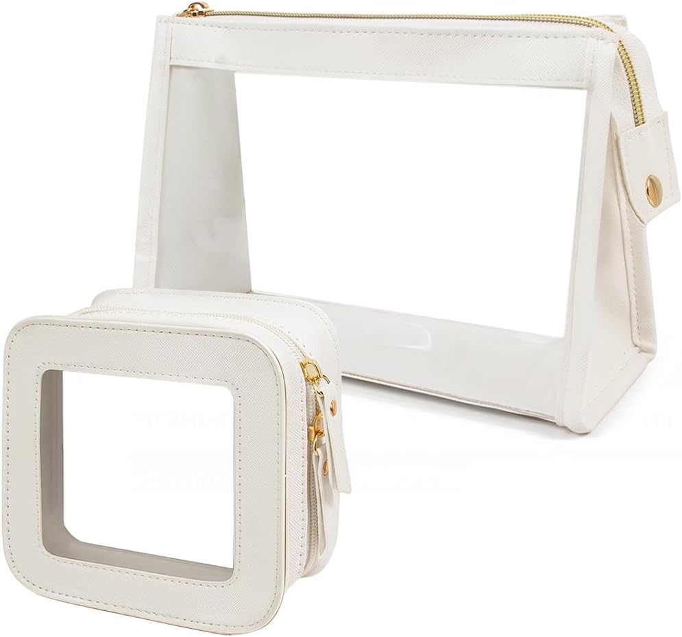 2 Pack Clear Makeup Bag Set Travel Cosmetic Case TSA Approved Toiletry Bag with Zipper Small Make Up Bags for Women Cute Waterproof Carry-on Travel Organizer Car Organizer Bag
