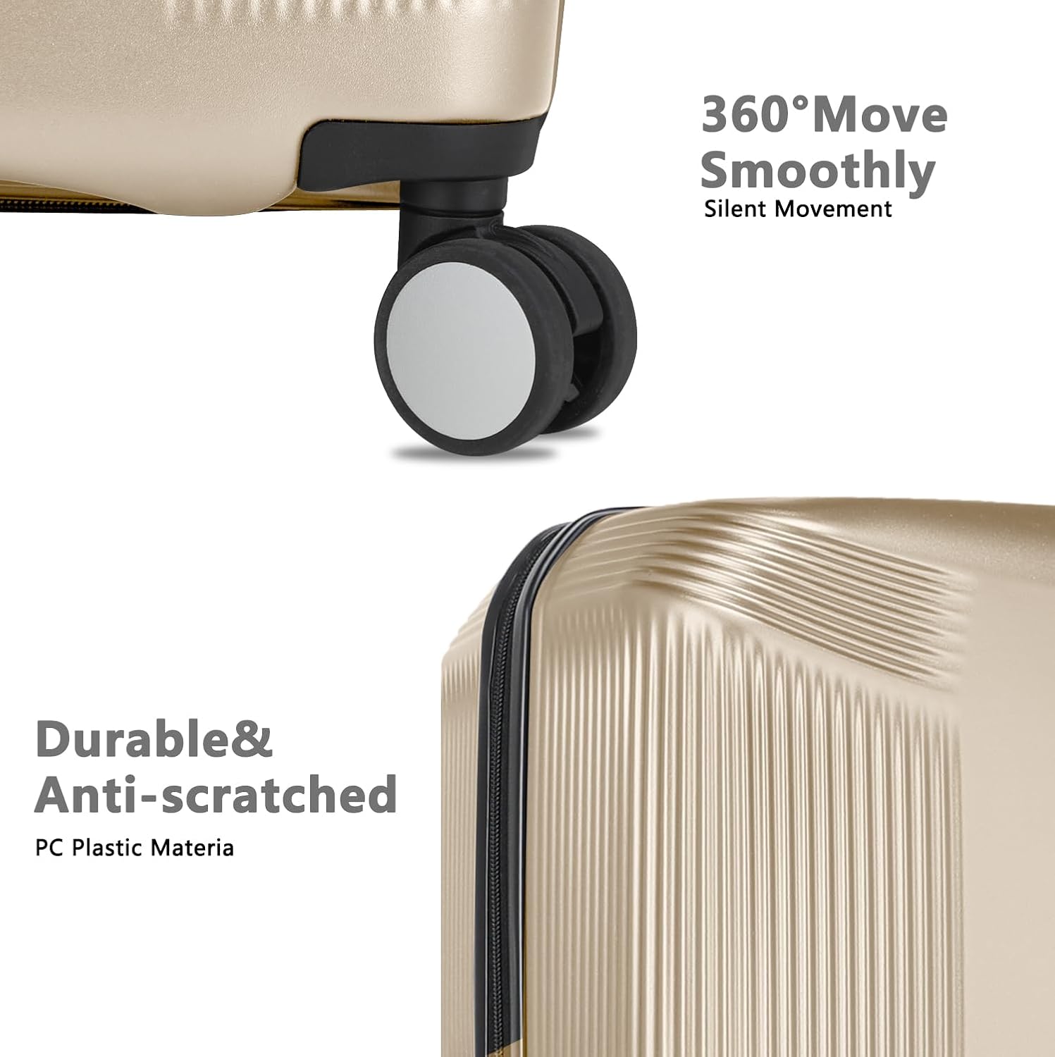- Premium Materials & Craftsmanship: Made of high-quality 100% Polycarbonate (PC) hardside material, it's durable and impact-resistant. Sturdy double zippers and reinforced corners ensure long-term reliability.