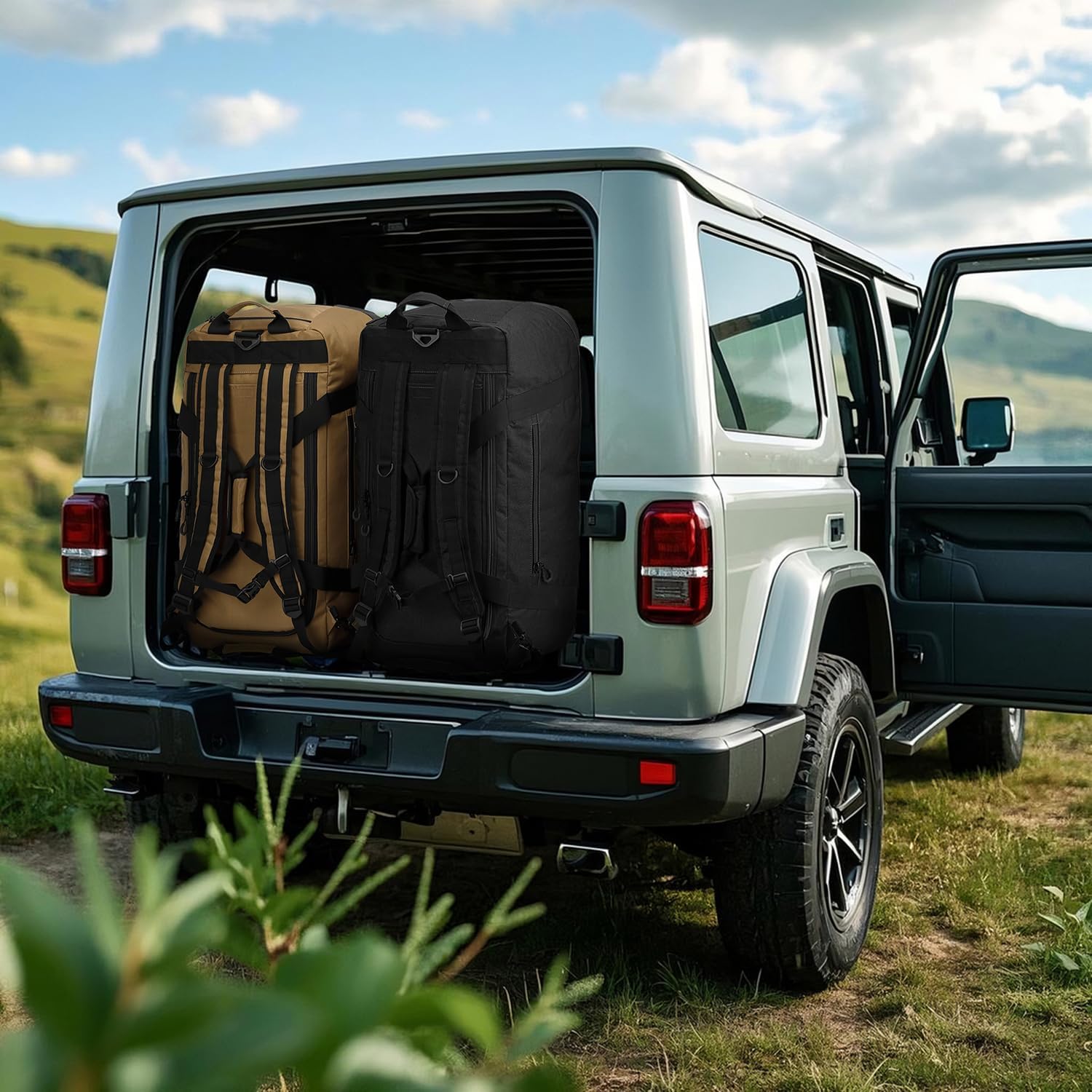- Durable Heavy-duty Travel Duffel Bag: Made of high-quality 900D fabric, with a waterproof PVC at the fabric, the double-layer fabric is more sturdy and scratch tear resistant. The stitching and stress points have been reinforced, and the 10 # main zipper is more flexible and sturdy, thickened buckles enhance durability, Premium materials making this camping duffle bag long-lasting.